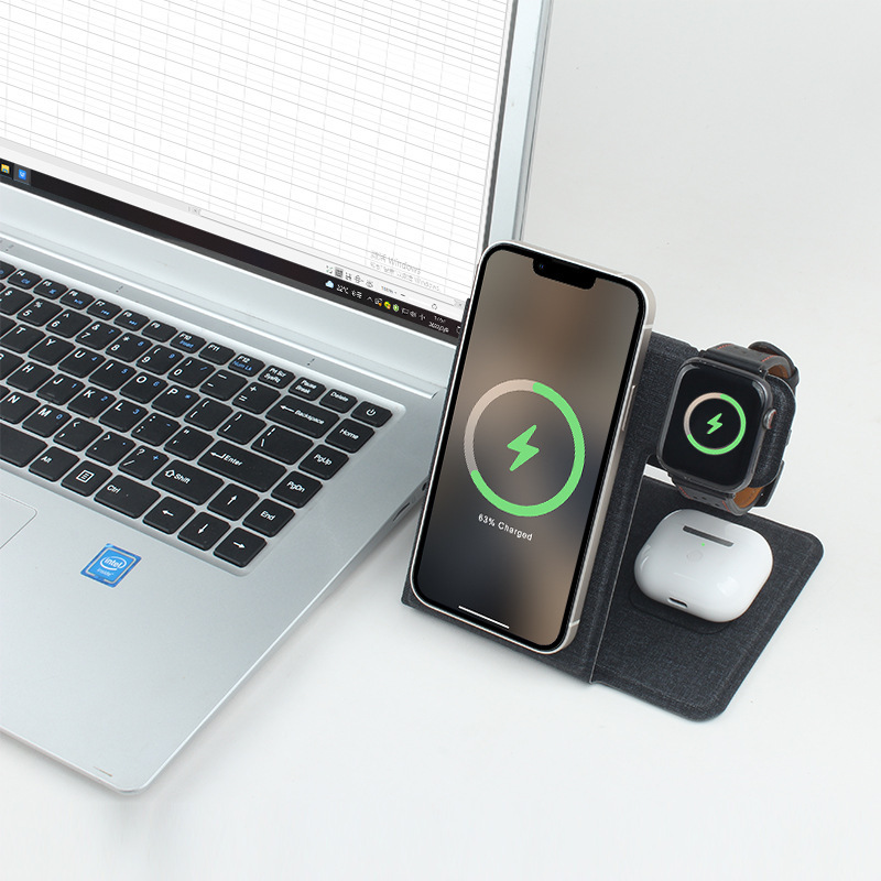 PU材质多功能三合一折叠无线充