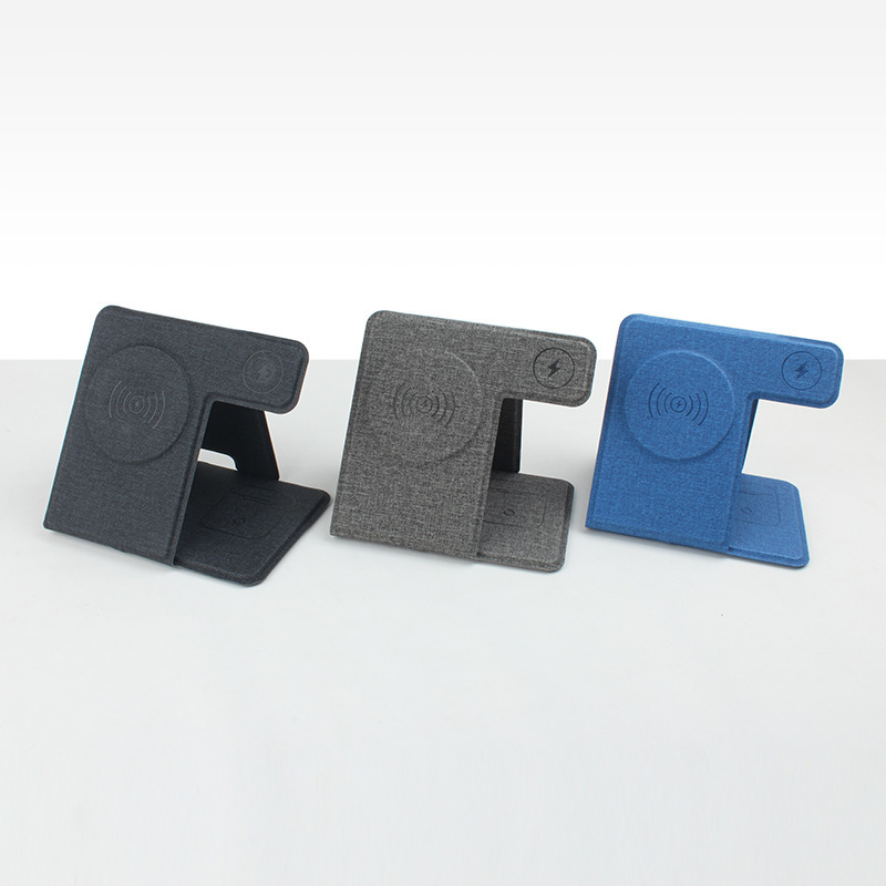 手机 耳机 手表 三合一无线充厂家 折叠PU材质多功能无线充定制
