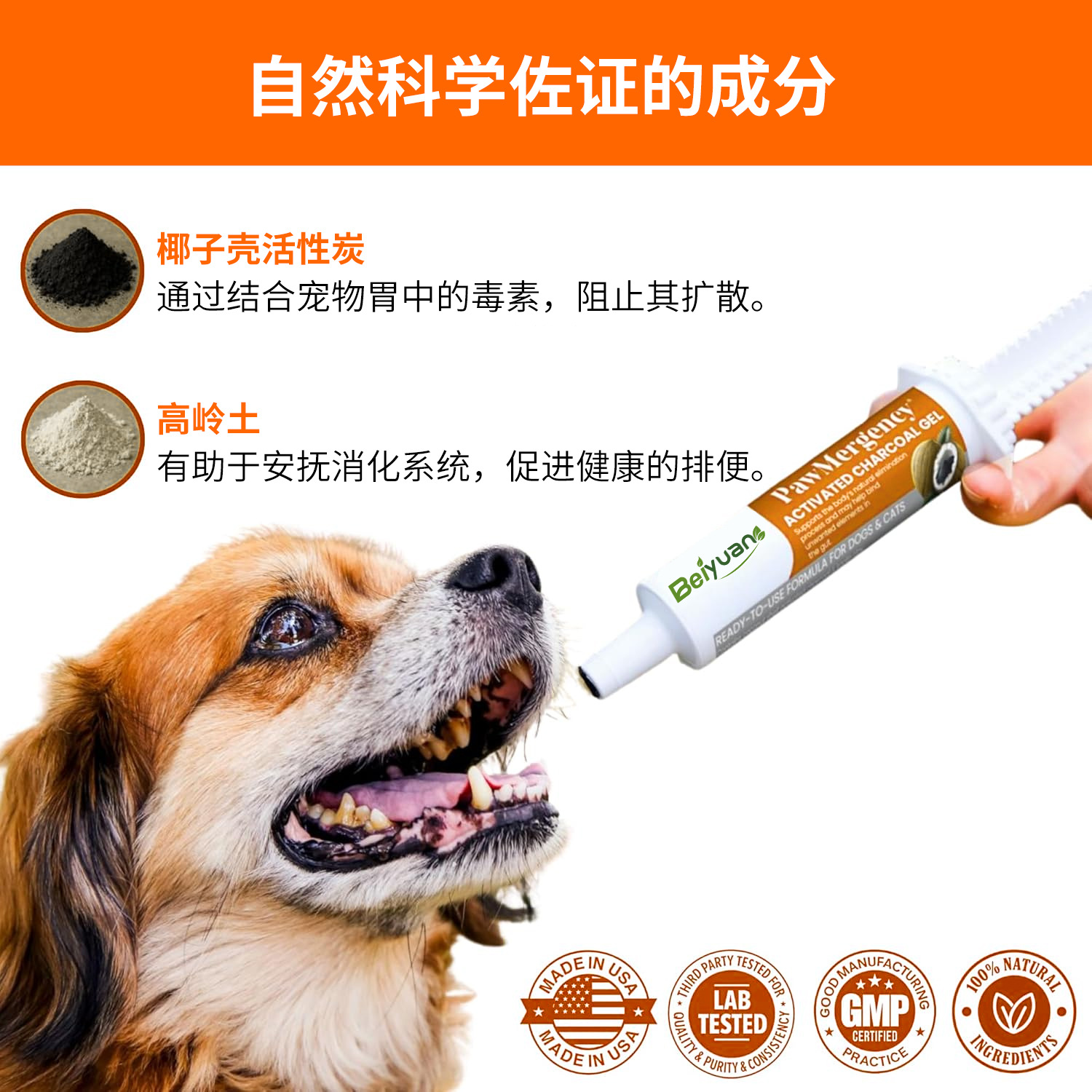 跨境宠物营养膏活性炭椰壳子猫狗误食口服消化抗腹泻糊剂保健品