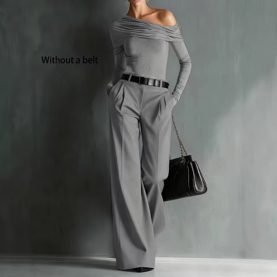 2026春款女式微弹直筒西装裤气质百搭通勤免烫舒适休闲不含腰带