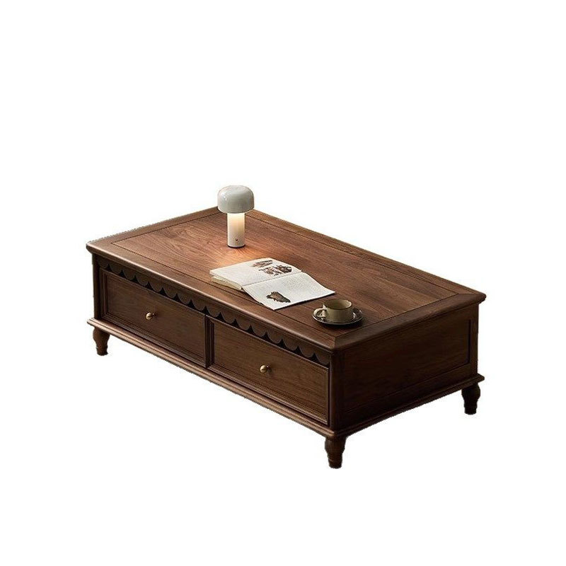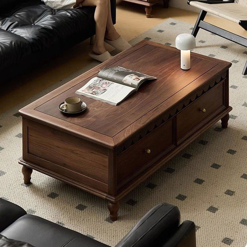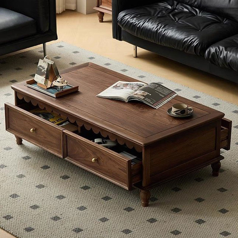 法式复古风北美黑胡桃木雕刻茶几纯实木新型的茶桌客厅家用茶几桌