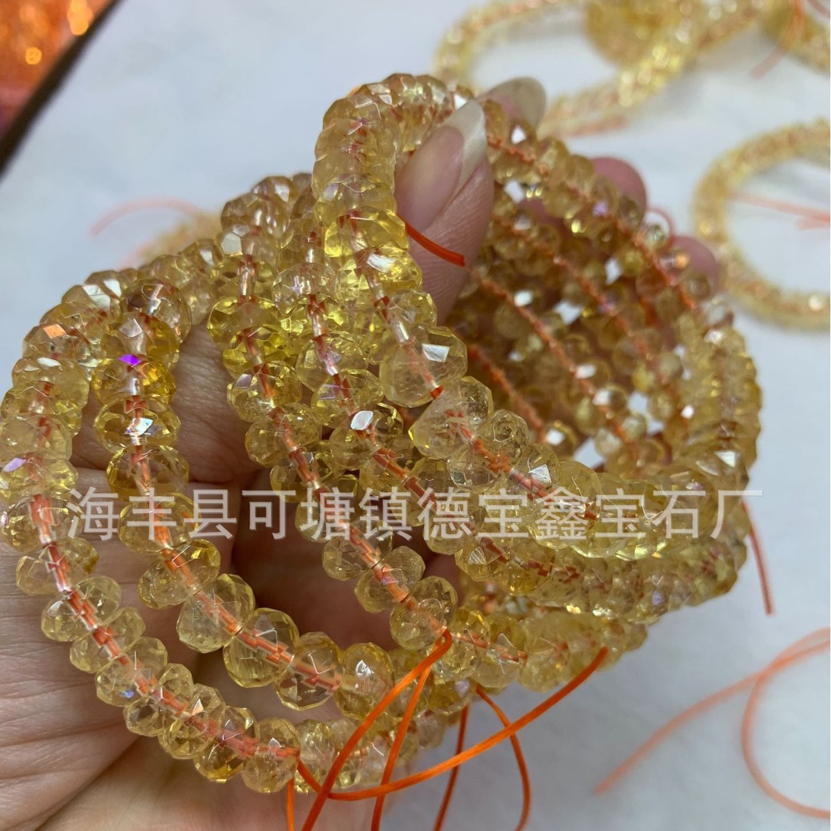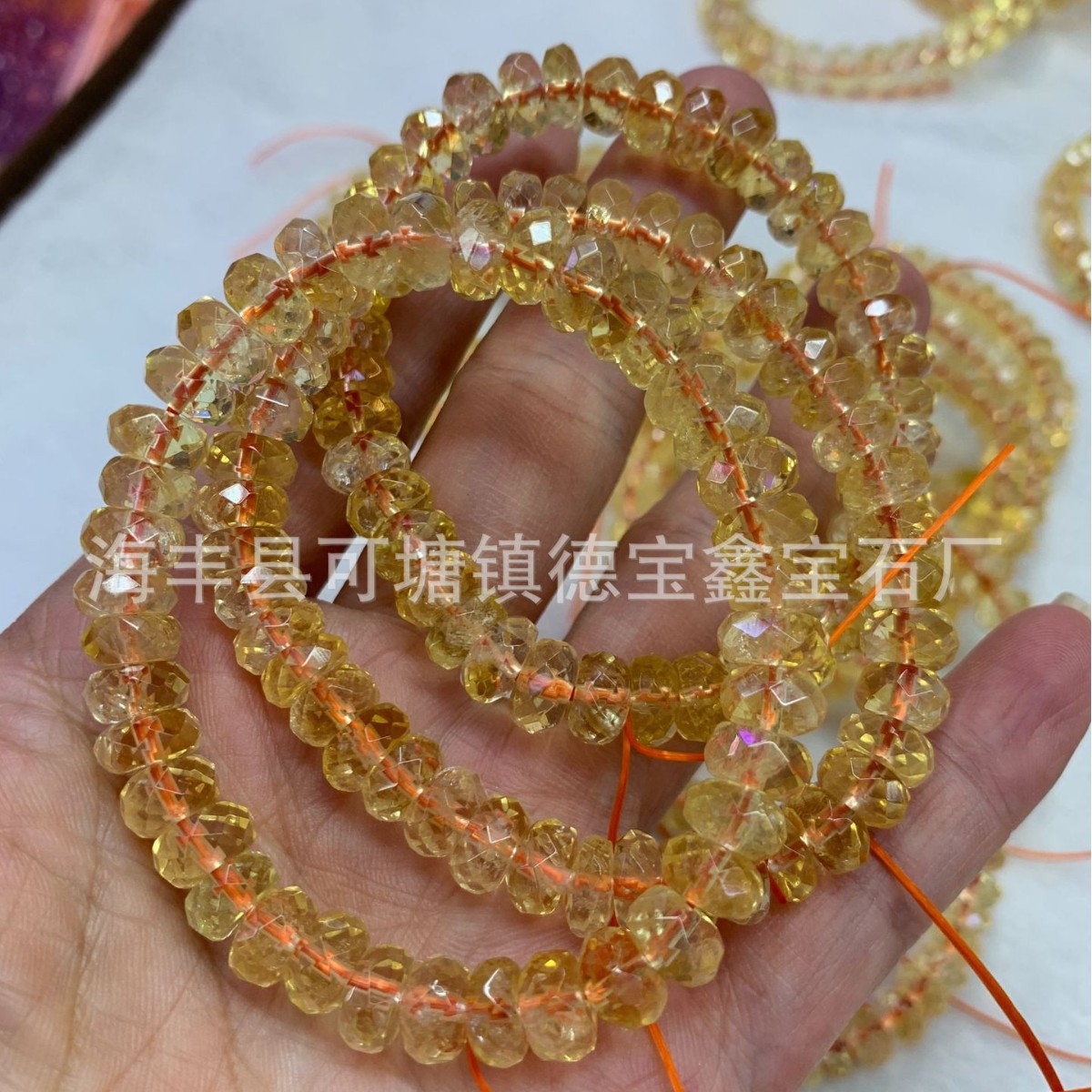 天然黄水晶算盘珠手链 刻面盘盘珠 黄水晶切角扁珠手串散珠批发