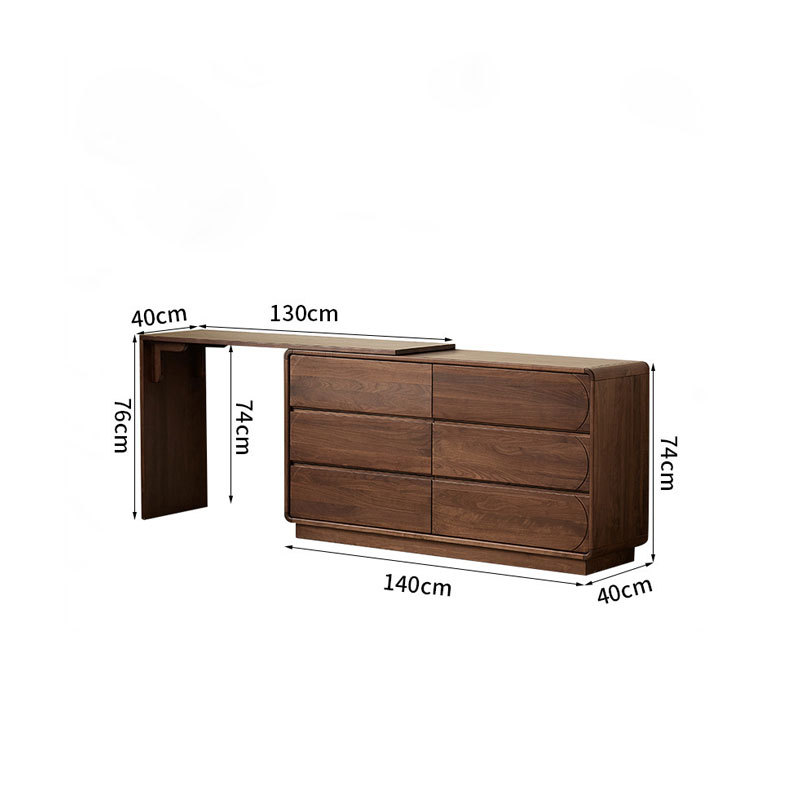 北美黑胡桃木梳妆台北欧简约全实木卧室床尾斗柜一体化妆书桌
