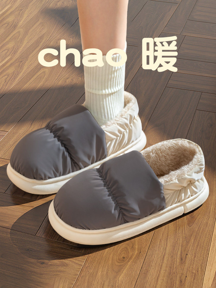 男士棉拖鞋抗菌冬季包跟居家居室内保暖防水大码毛棉鞋女款秋冬天