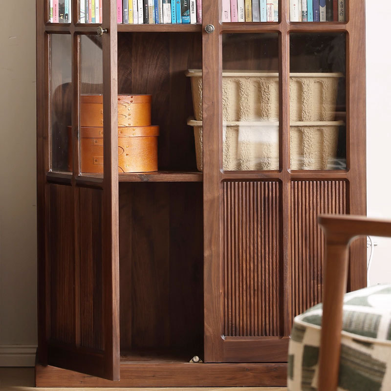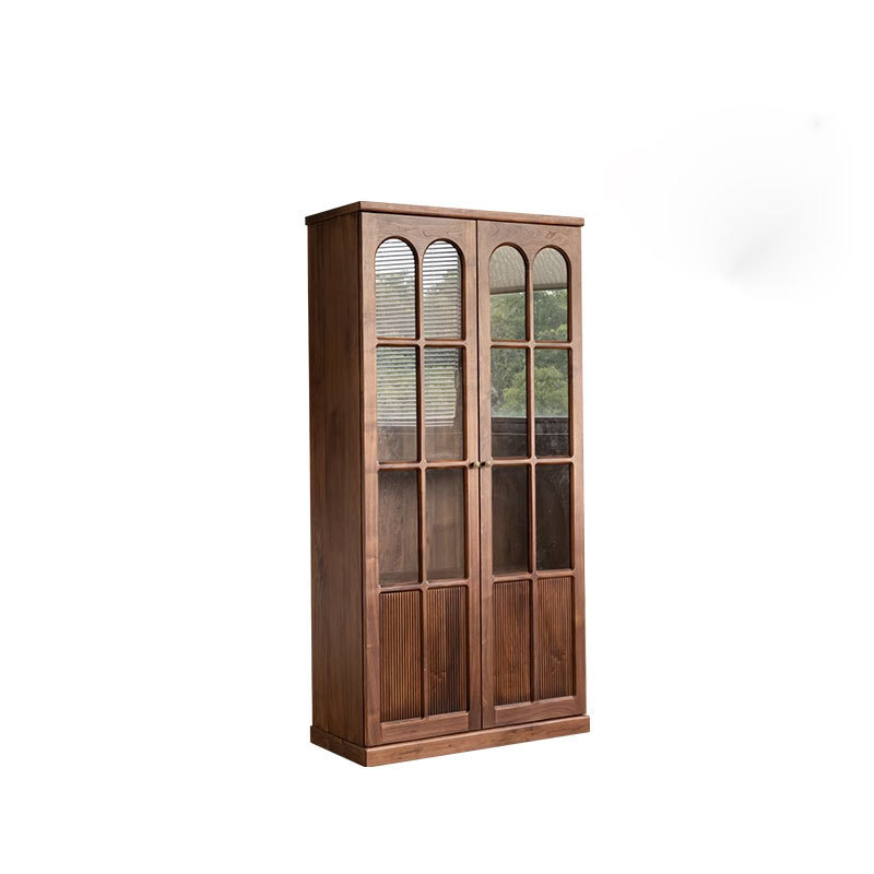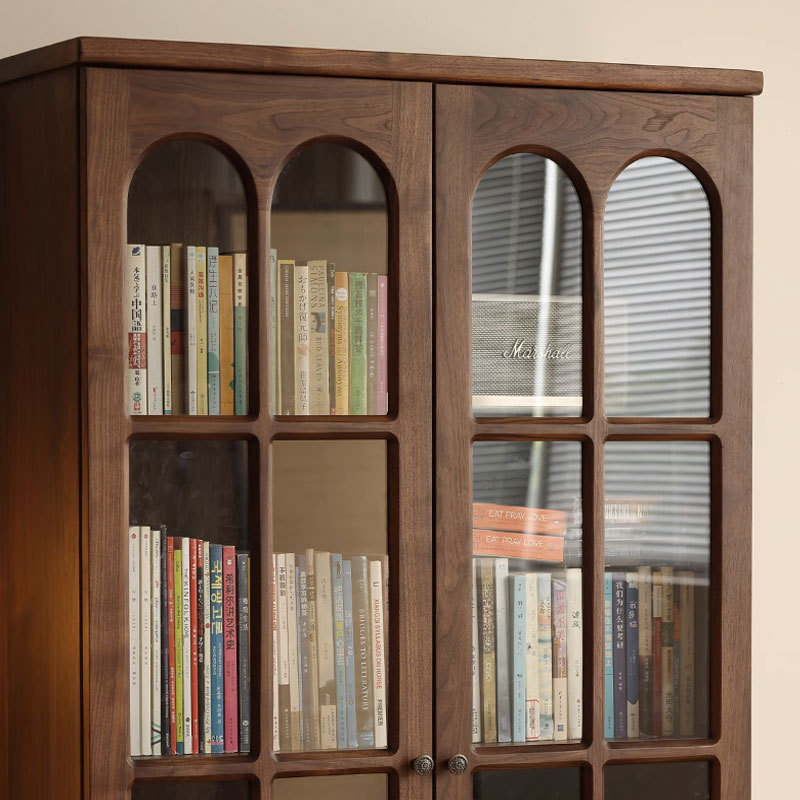 北美黑胡桃实木书柜 北欧简约办公室展示柜 客厅靠墙拱形置物柜