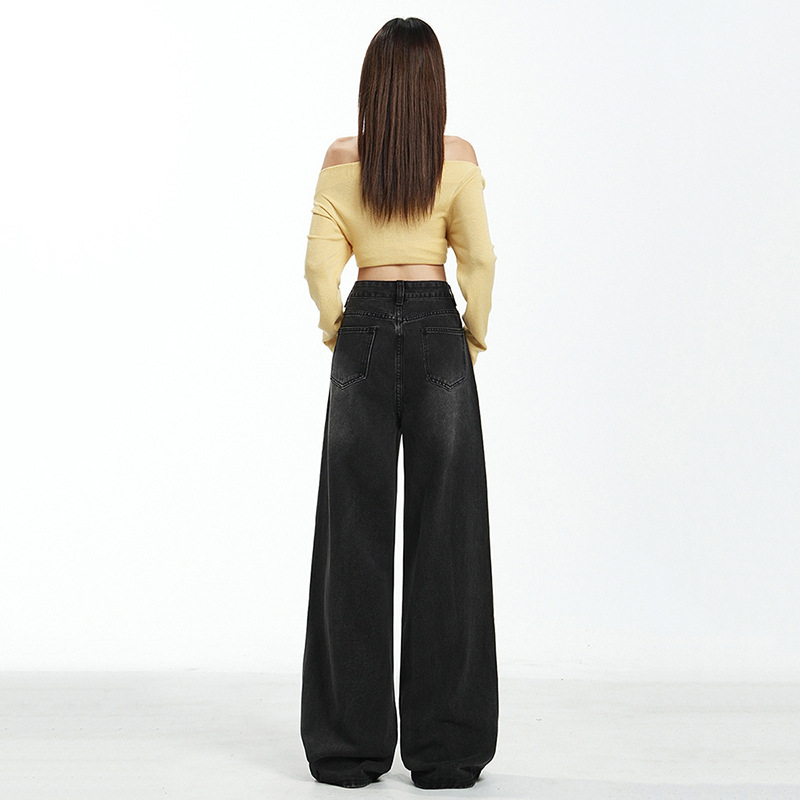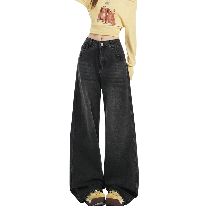 2025年秋冬季新款灰色牛仔长裤女美式高腰百搭宽松垂感阔腿拖地裤