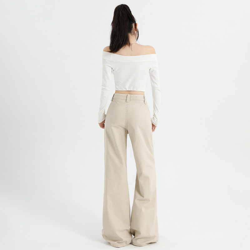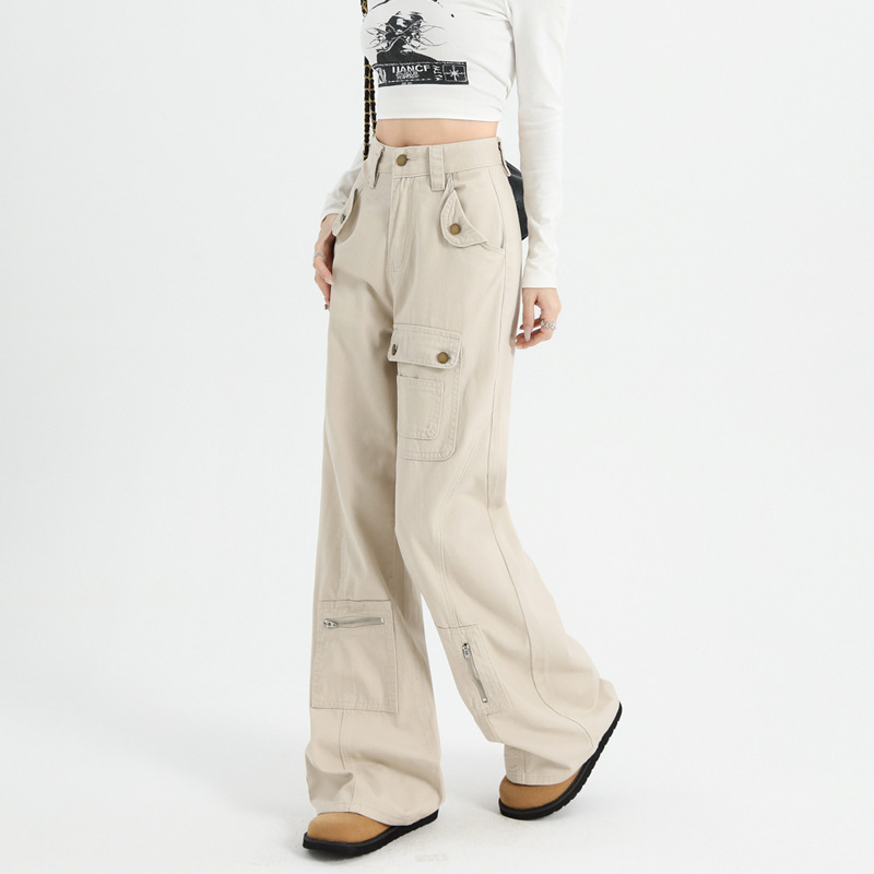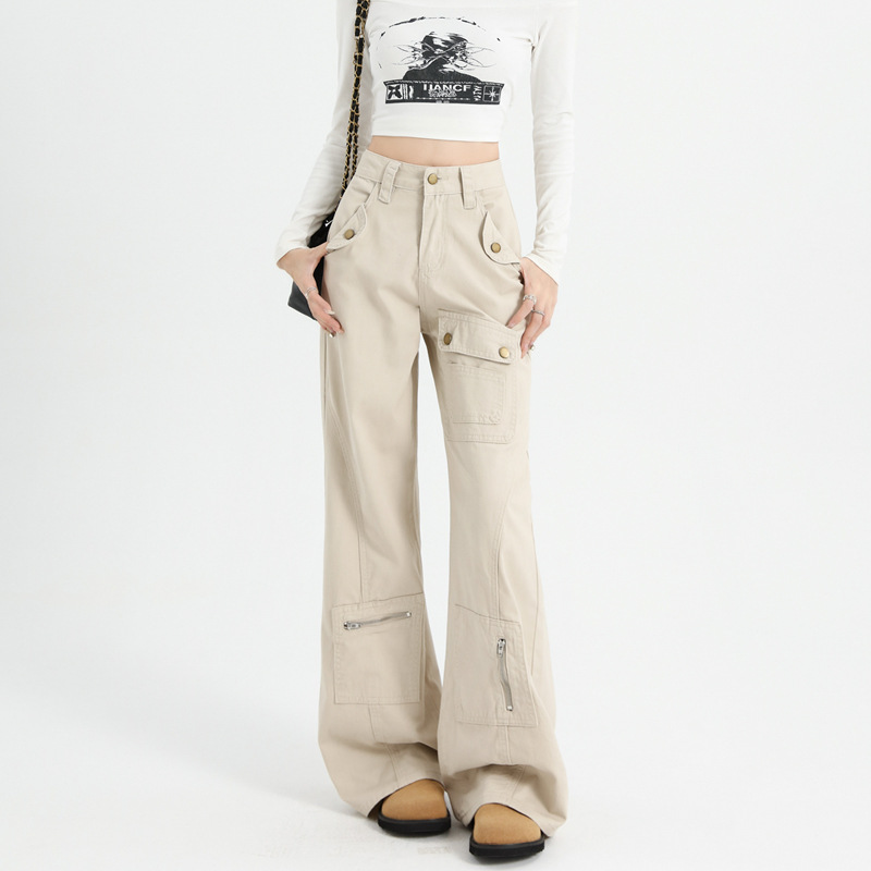 2025年秋冬季新款美式工装裤女高腰多口袋设计感宽松阔腿微喇叭裤