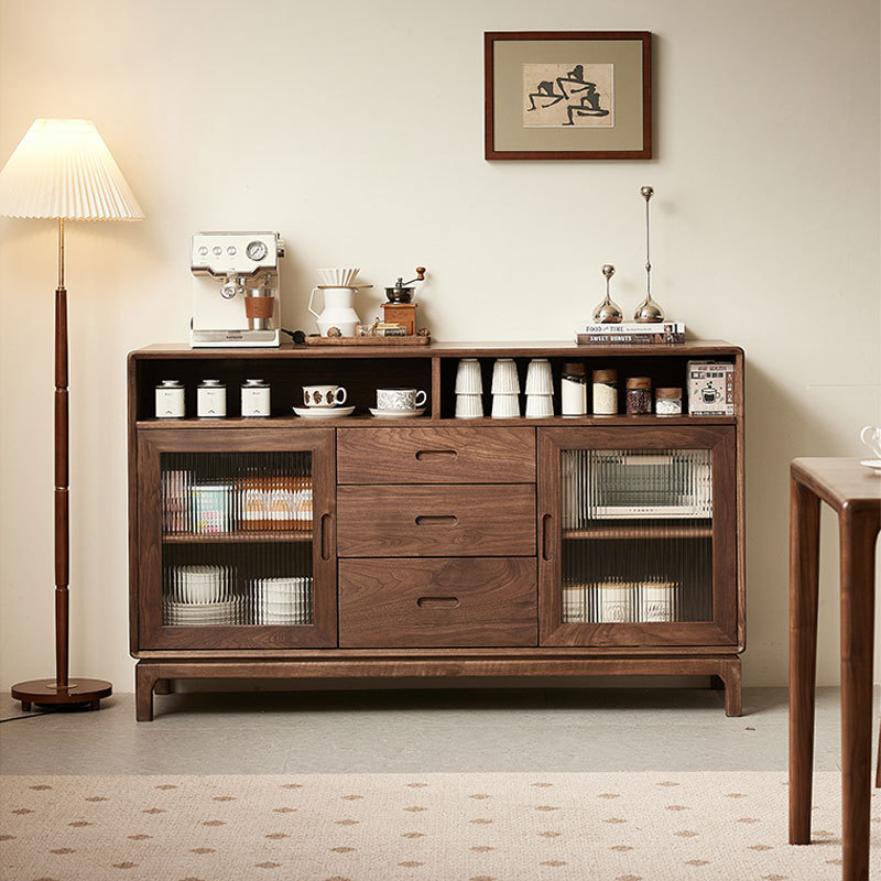 北美黑胡桃木实木餐边柜北欧简约茶水柜餐厅家用靠墙多功能储物柜