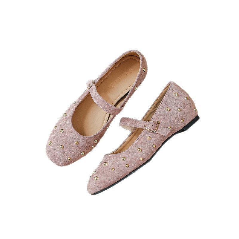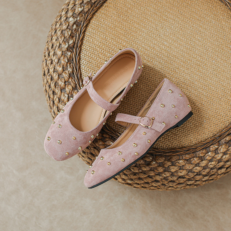 铆钉平底单鞋女2026新款秋冬浅口玛丽珍鞋复古气质方头女鞋