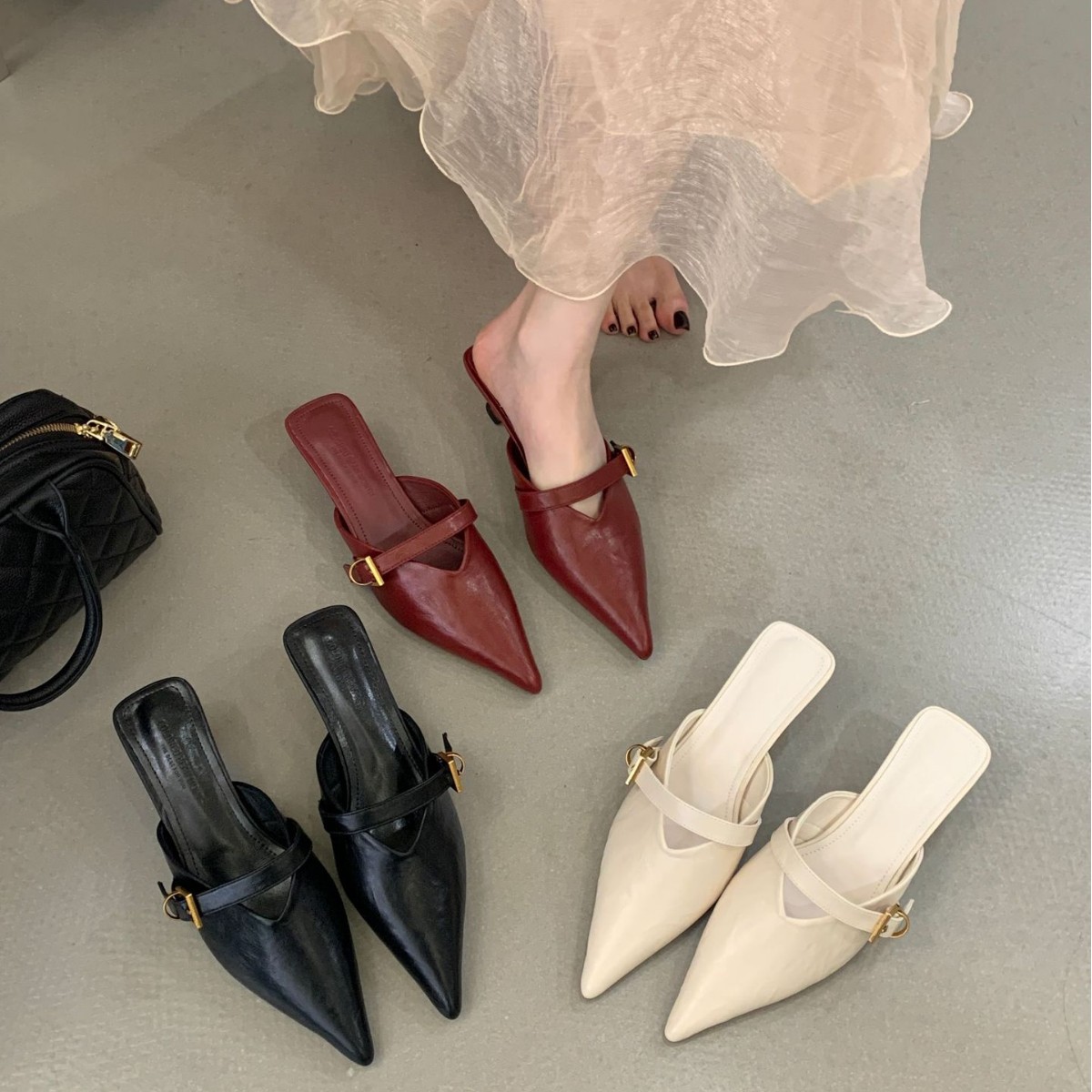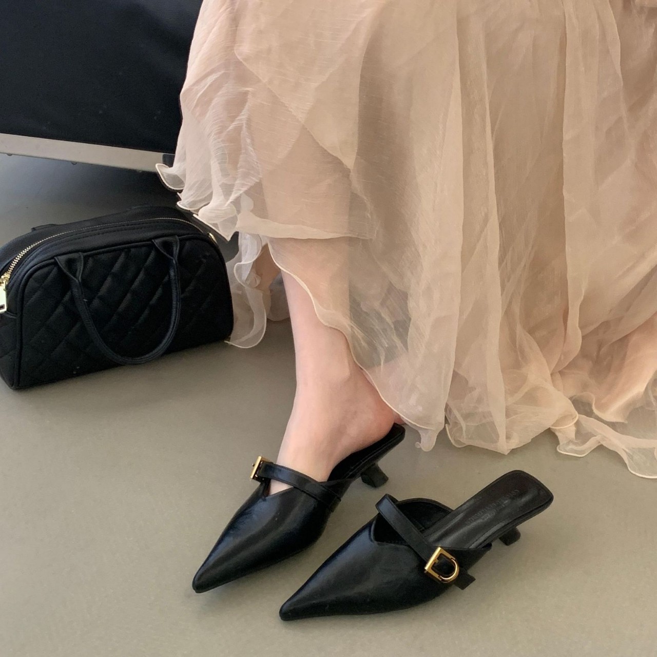 2026春季欧美包头半拖鞋外穿春懒人细跟中跟时尚百搭外出穿搭女鞋