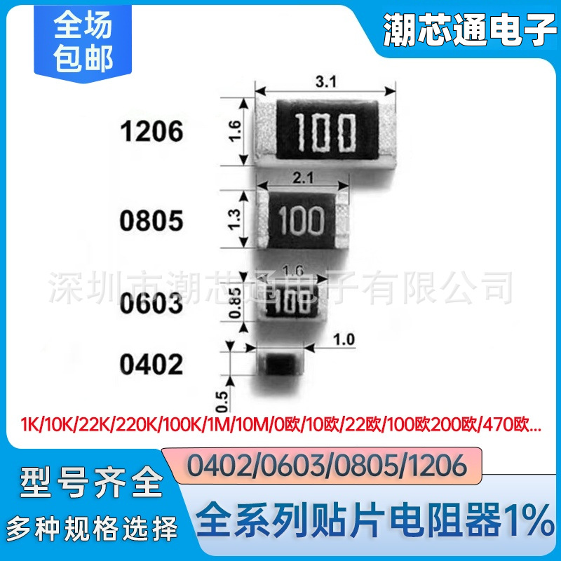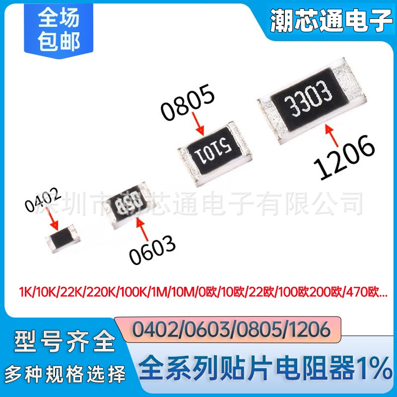 贴片电阻厚声 风华 1%0402 0603 0805 1206电阻0欧 100欧 1K 4.7K