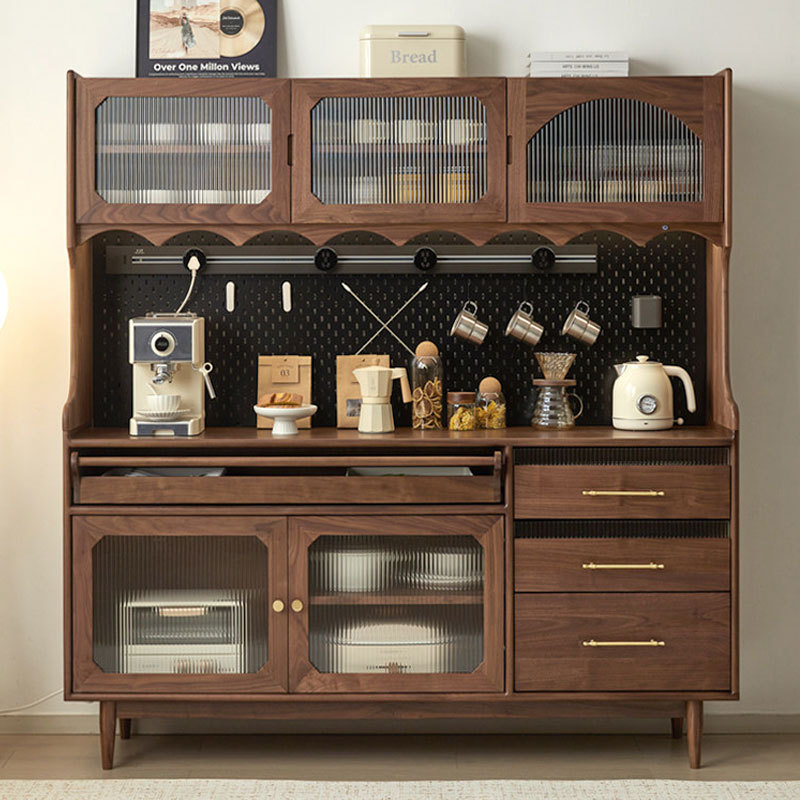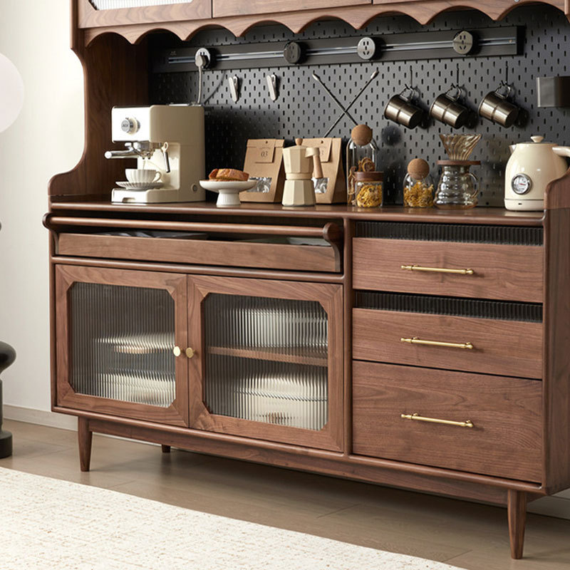 北美黑胡桃木餐边柜实木一体靠墙酒柜咖啡柜北欧简约储物高柜橱柜