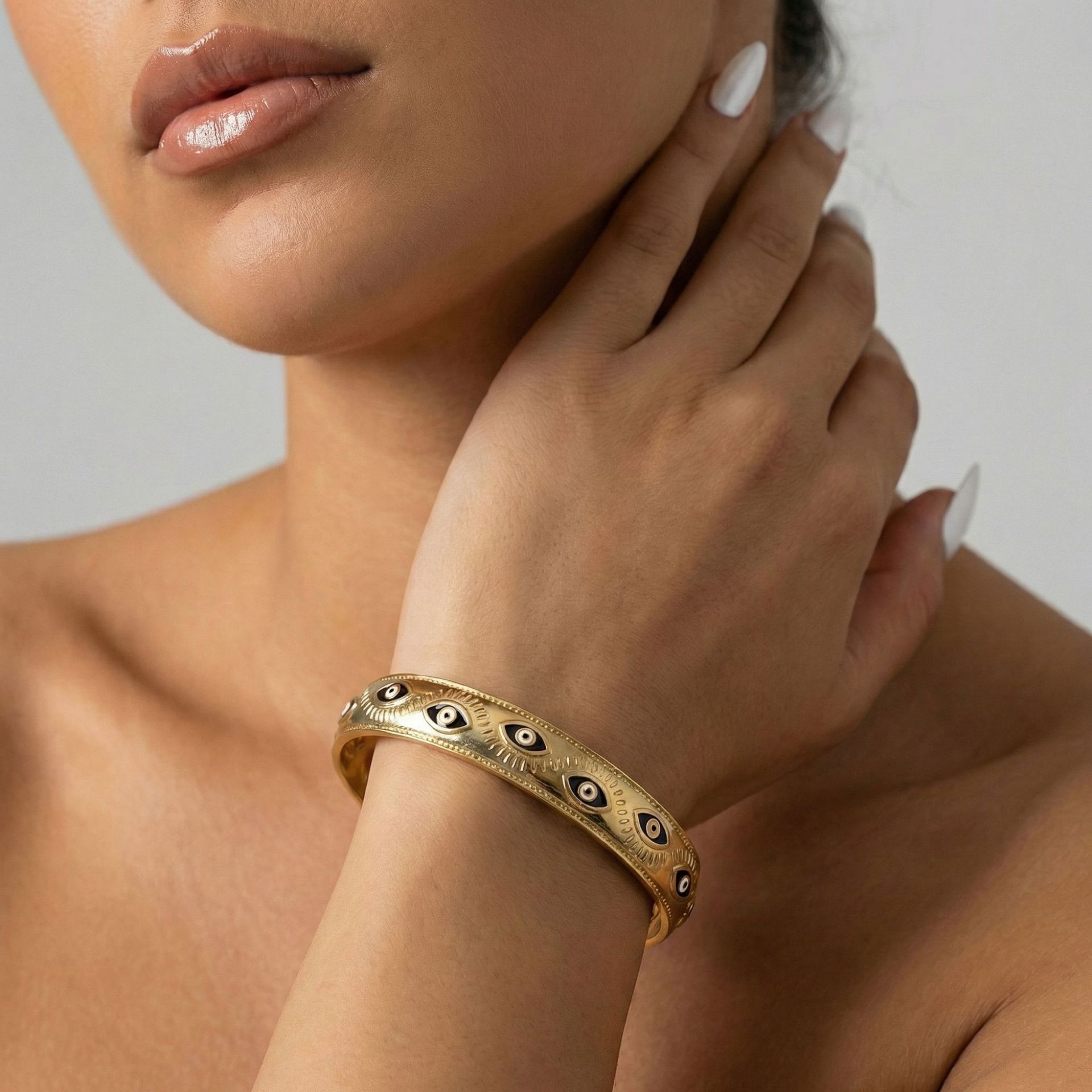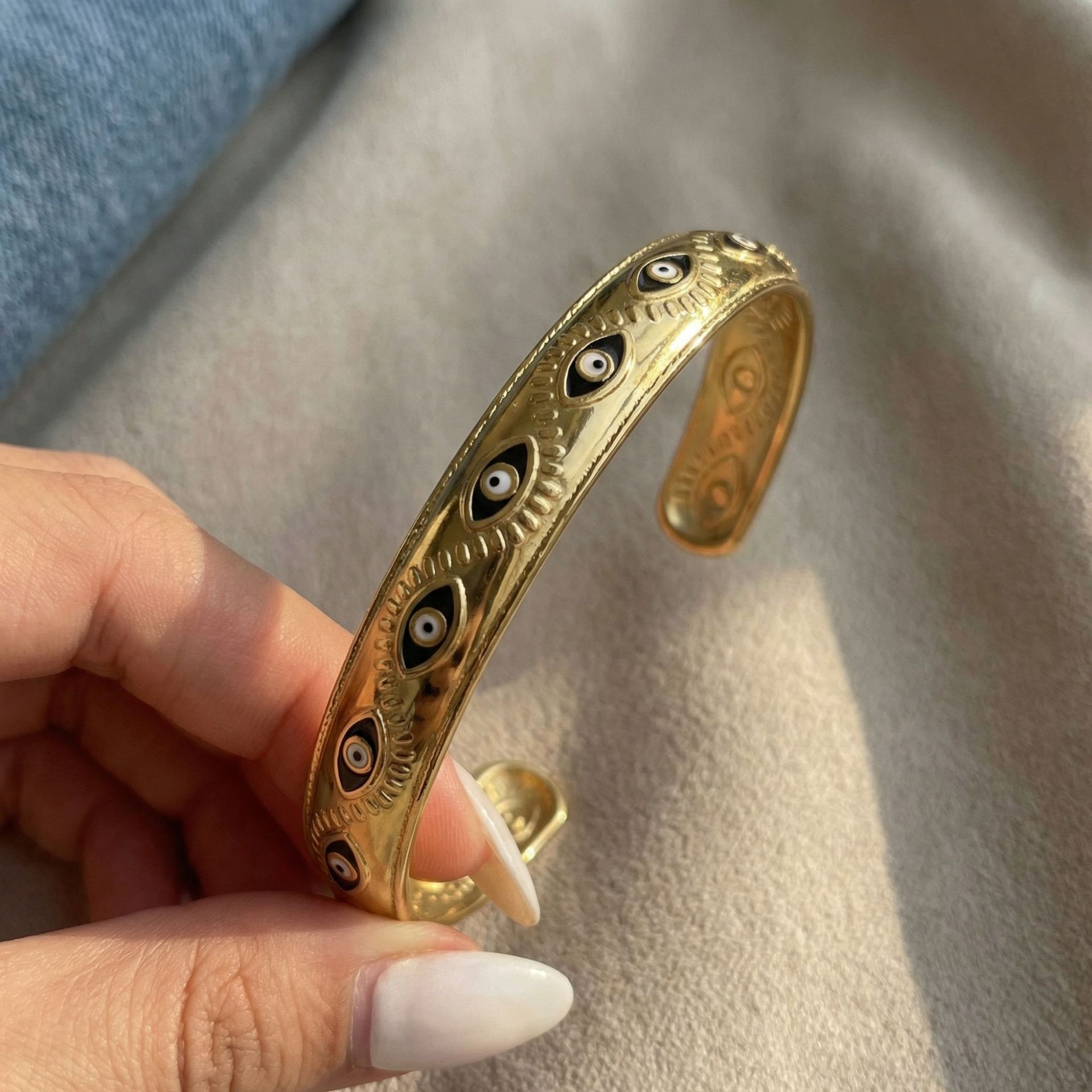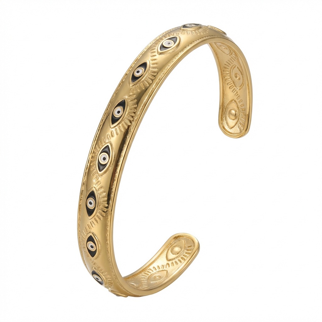 拉美爆款复古金色恶魔之眼开口手镯 18K镀金波西米亚风不锈钢手镯