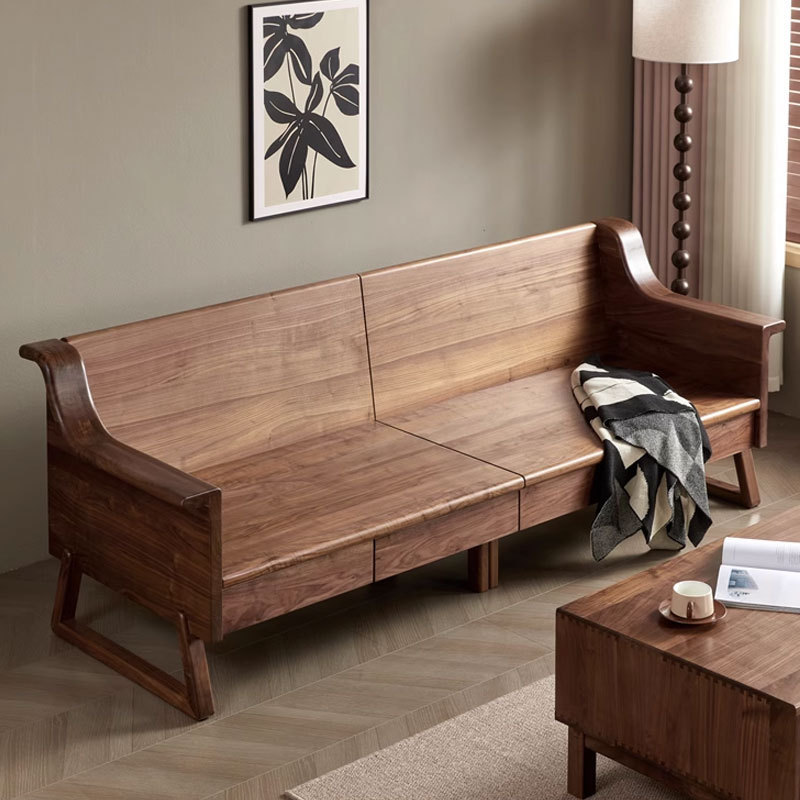 北美黑胡桃木沙发简约三四人位客厅组合小户型新中式实木原木沙发