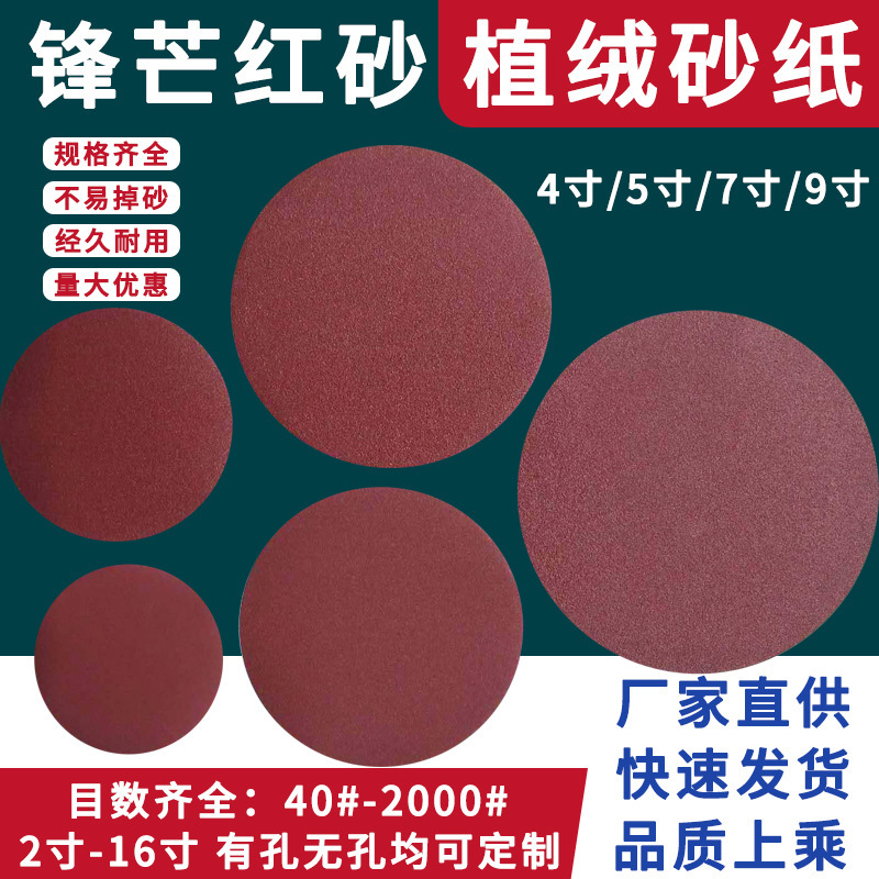 红5寸4寸7寸9寸植绒自粘气磨片圆盘沙皮木工家具打磨砂纸厂家直销