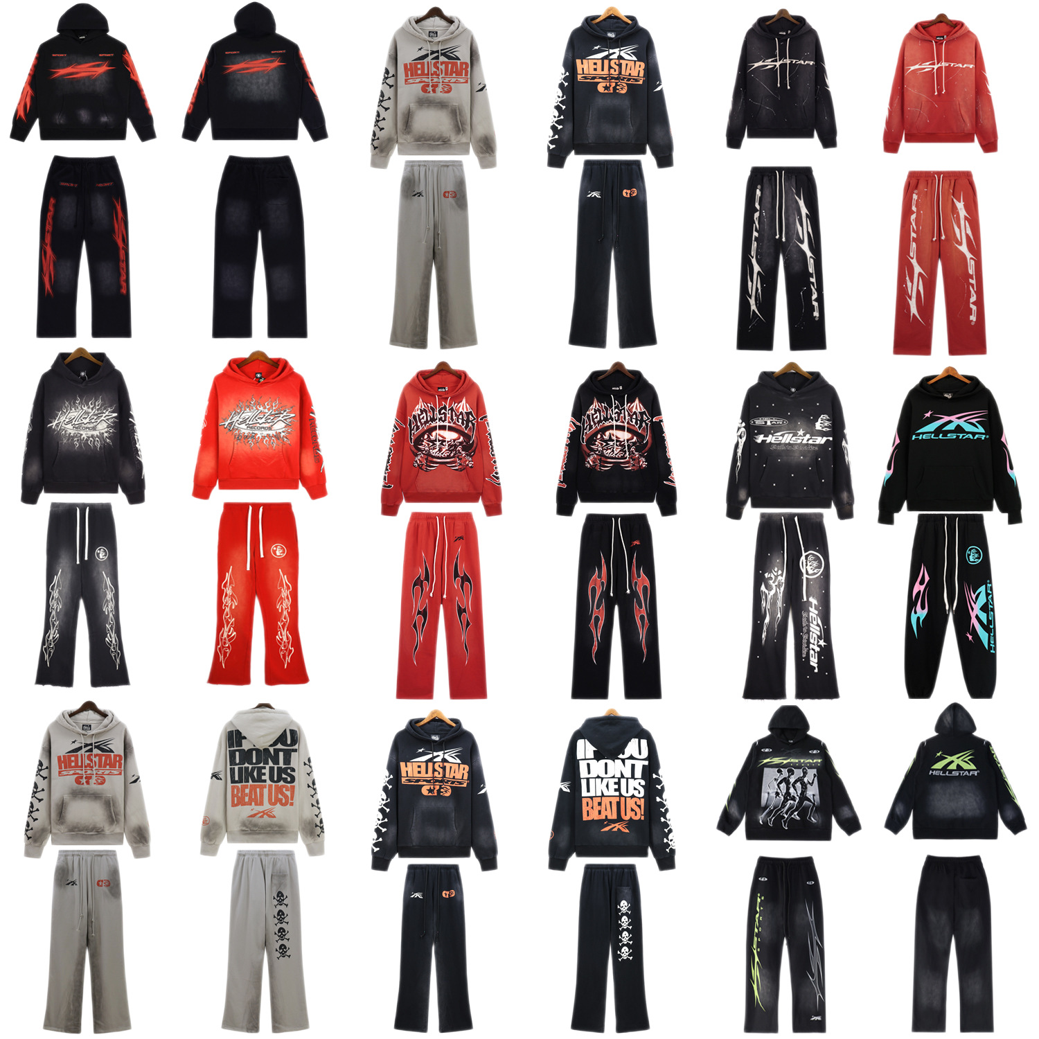 地狱之星外贸跨境批发Hellstar美式复古连帽衫卫衣卫裤长裤套装