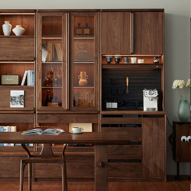 颜色 | 黑胡桃木咖啡柜尺寸:90*55*238高 | | 颜色 | 黑胡桃木书柜组合尺寸:240*55*238高 |