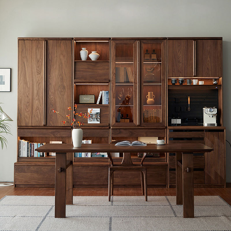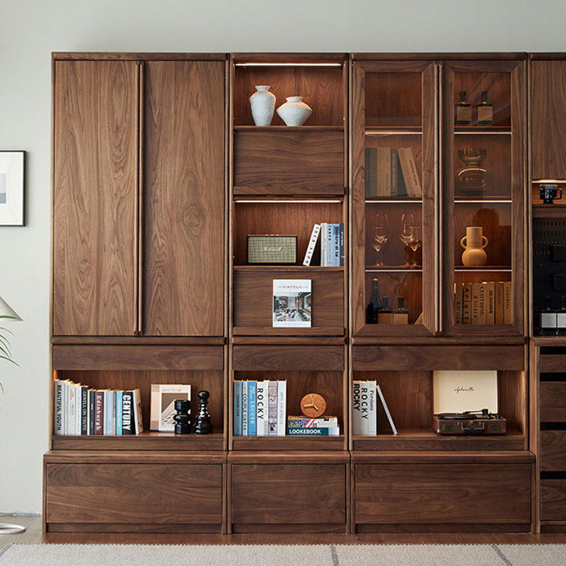 北美黑胡桃卡座书柜一体整墙满墙实木客厅组合书架复古落地展示柜