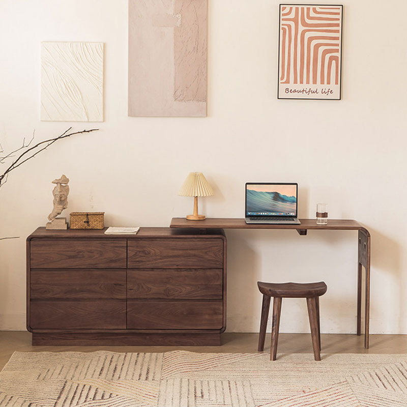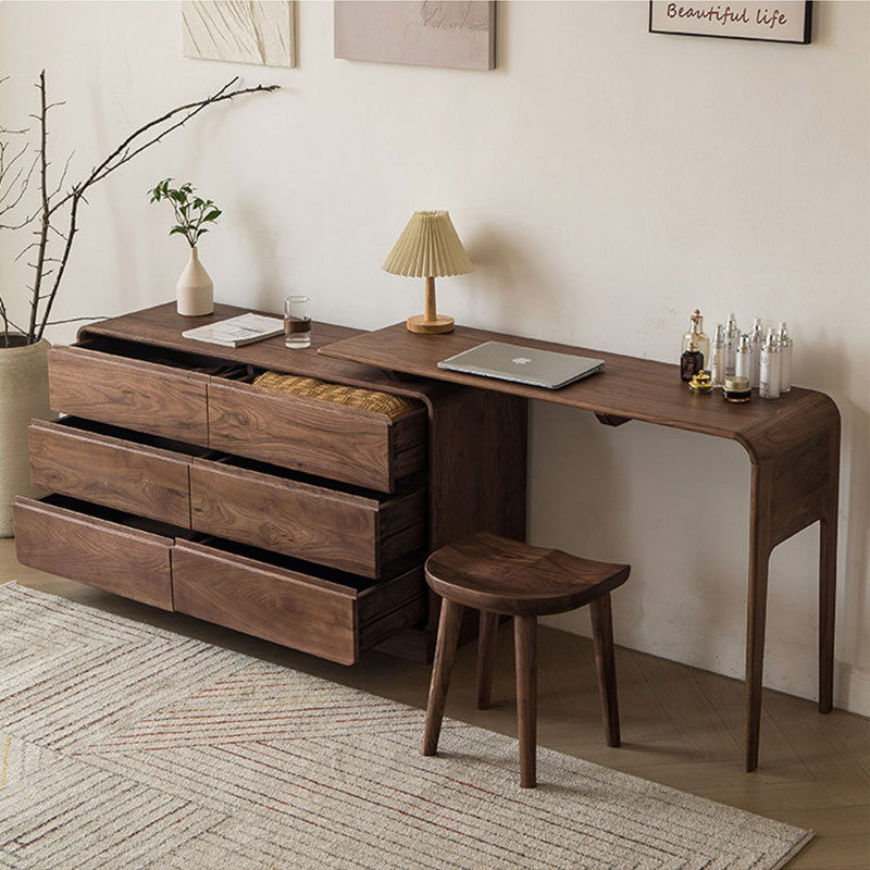北美黑胡桃木斗柜梳妆台一体书桌卧室简约多功能全实木收纳六斗橱