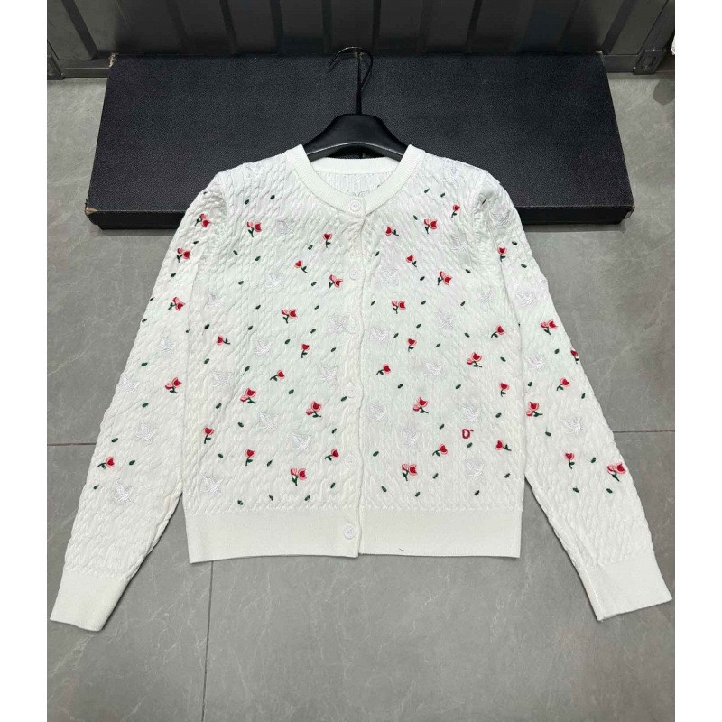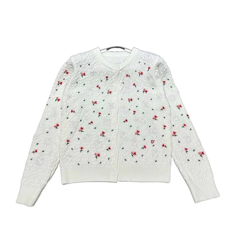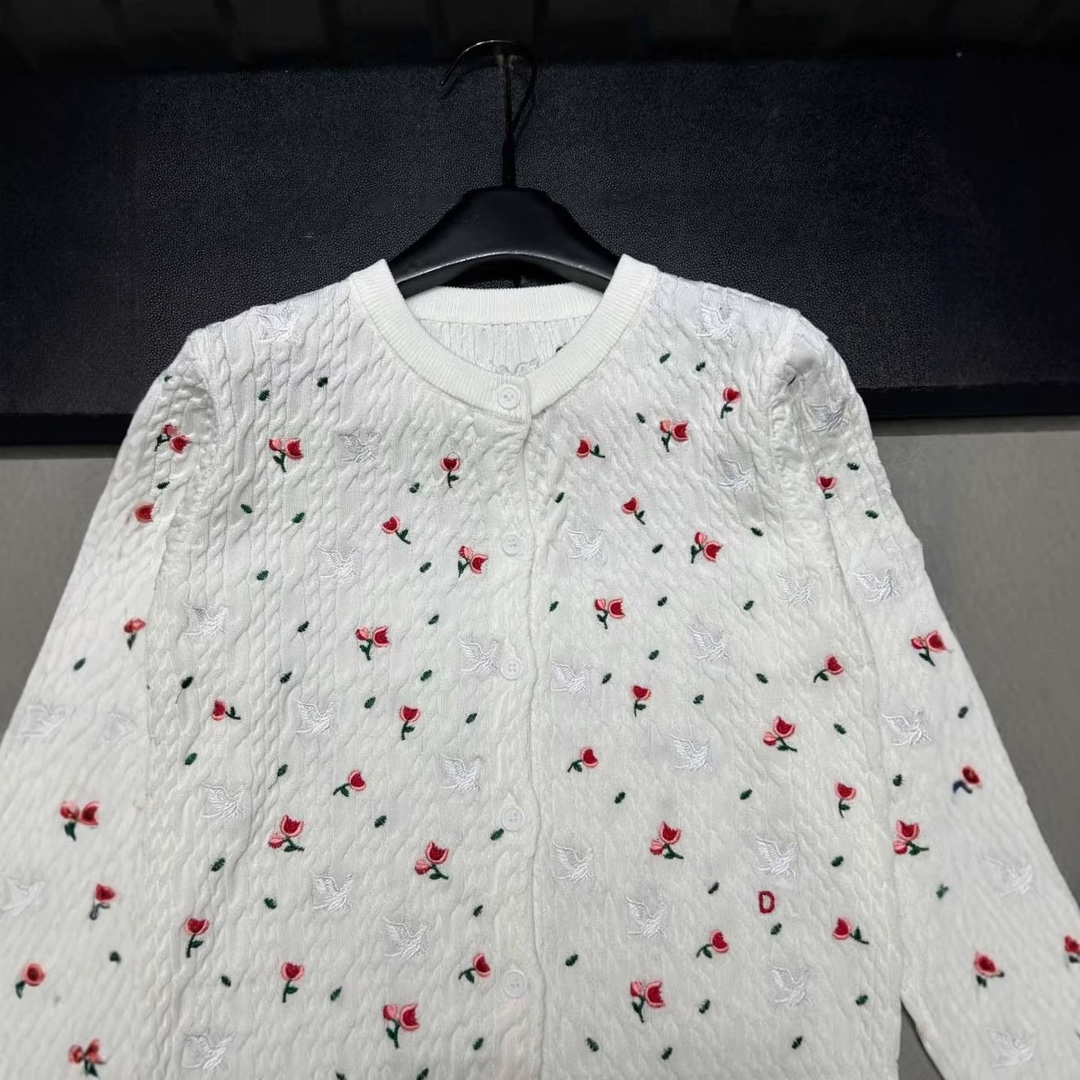 D系高品质26早春字母法式刺绣玫瑰花长袖针织开衫温柔风上衣女