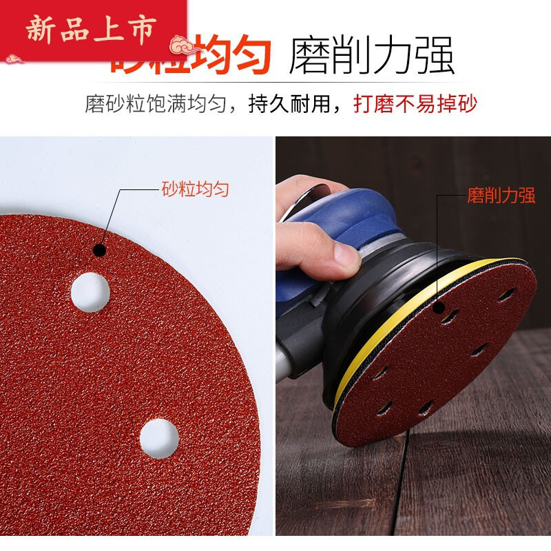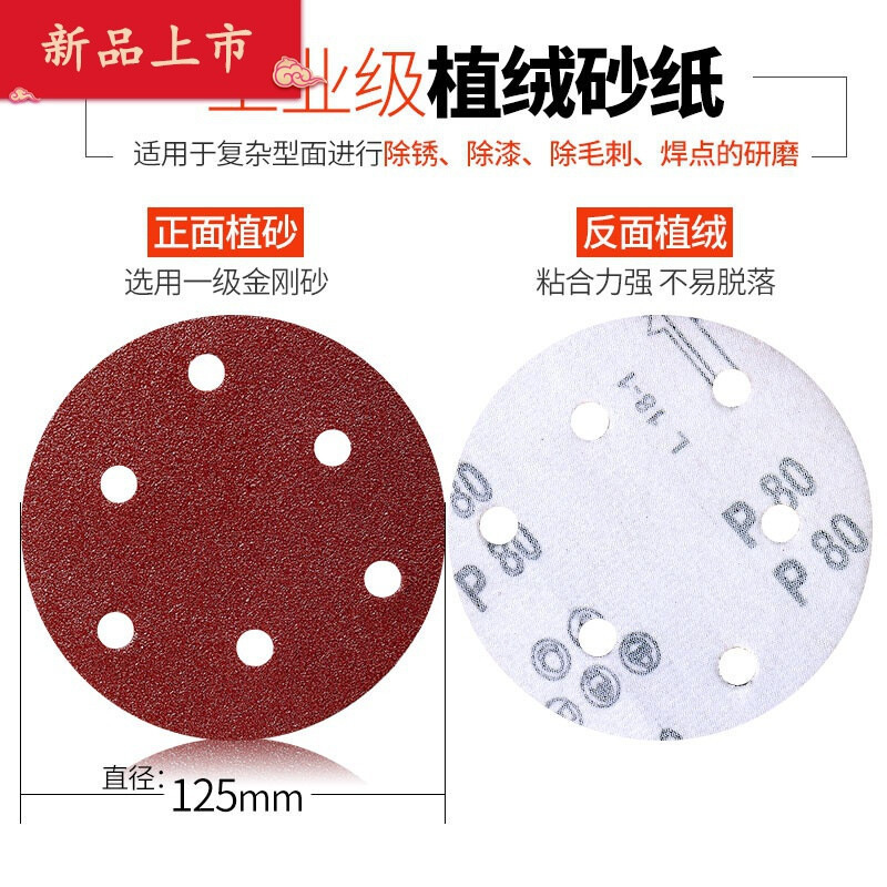 5寸6孔砂纸片干磨机拉绒片背绒片圆盘砂带孔植绒125MM氧化铝耐磨