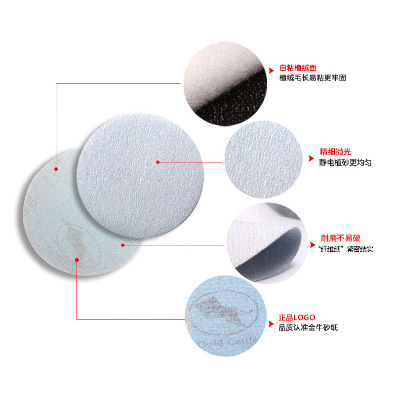 金牛背绒圆盘砂纸 木家具底漆打磨 不锈钢抛光砂纸2寸3寸气磨沙皮