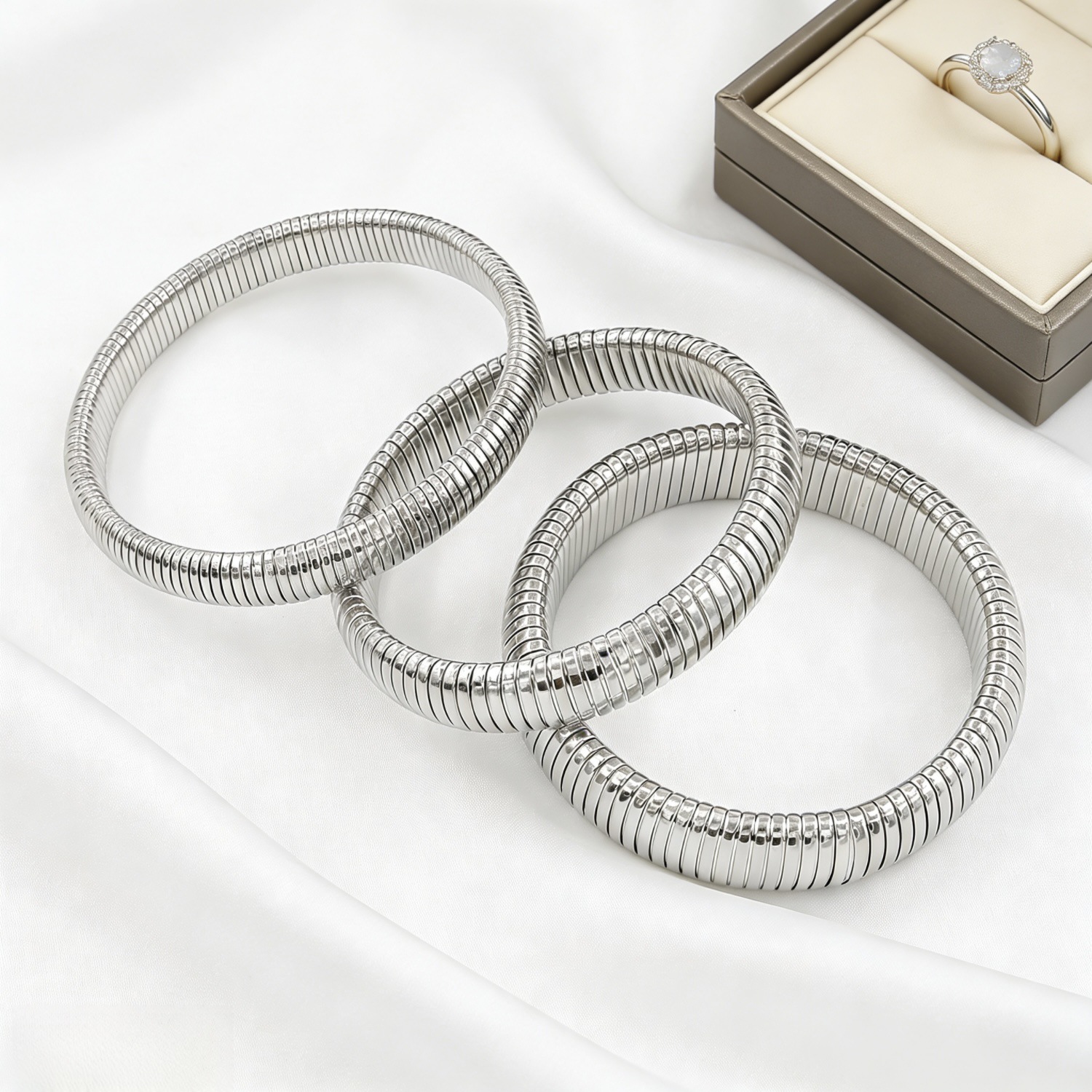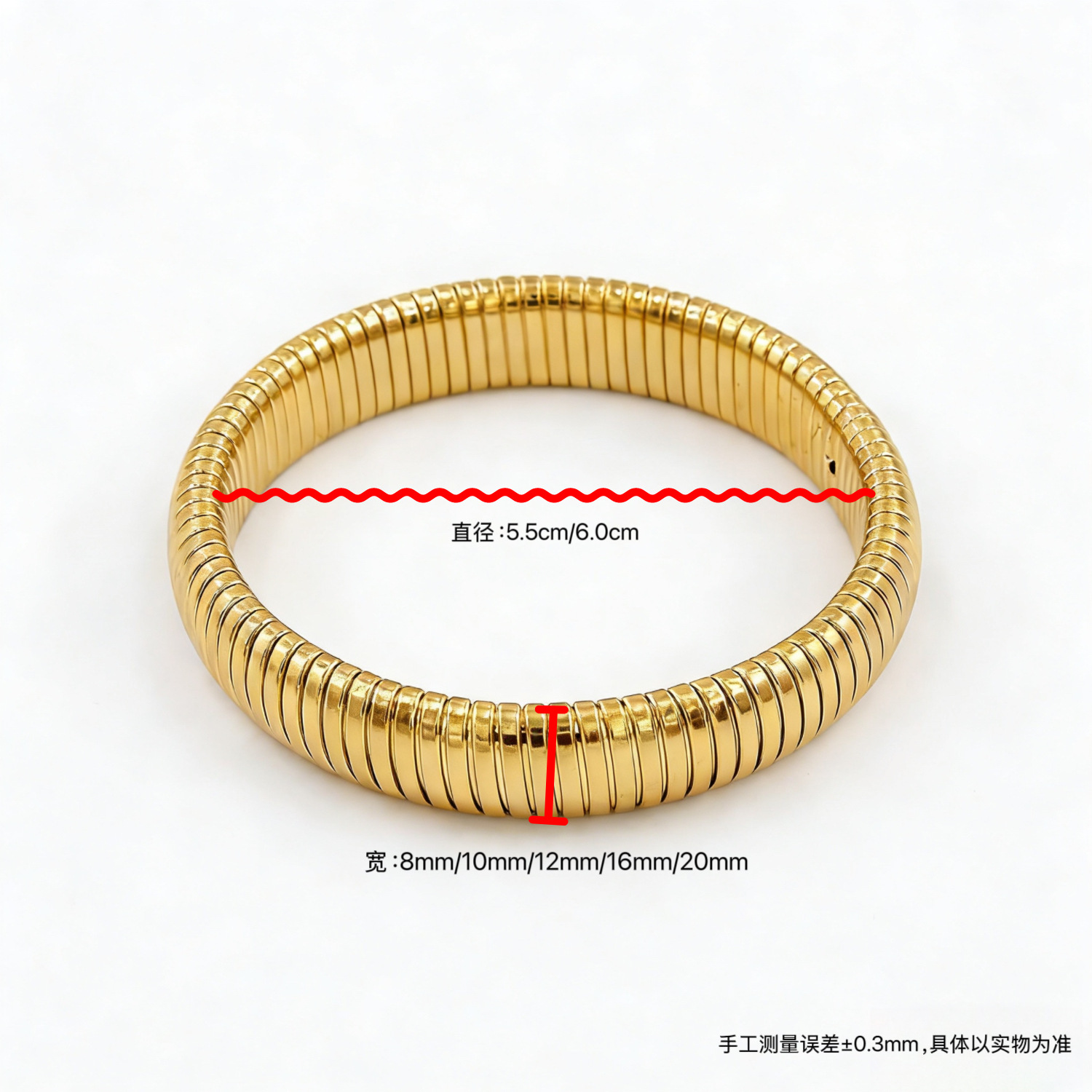 商品类型 | 饰品 | | 金色钢色手镯 | 跨境条纹弹力手镯不锈钢18k镀金男女素圈个性蛇骨型 |