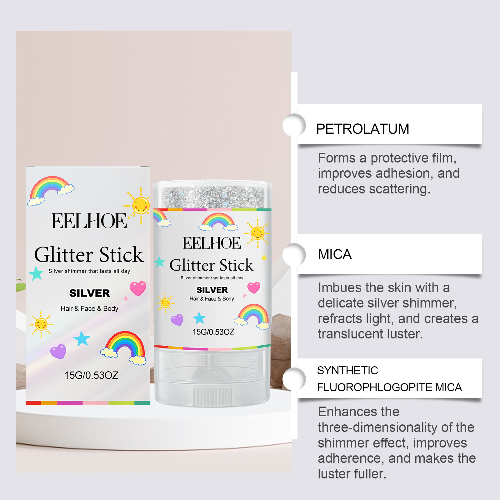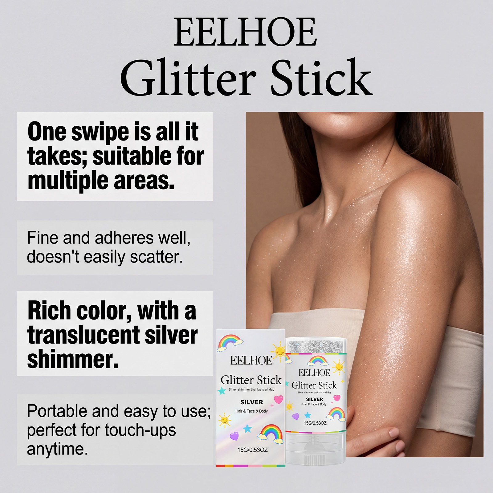 EELHOE 银色亮片闪光棒 金属光泽细闪不掉渣易上色可叠涂亮片闪光