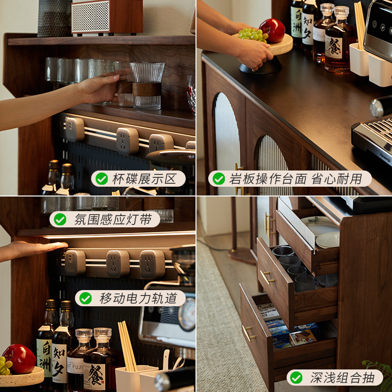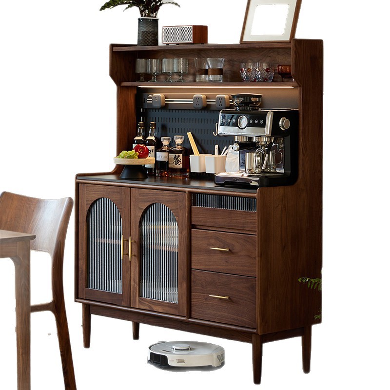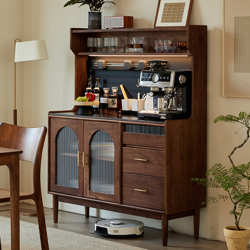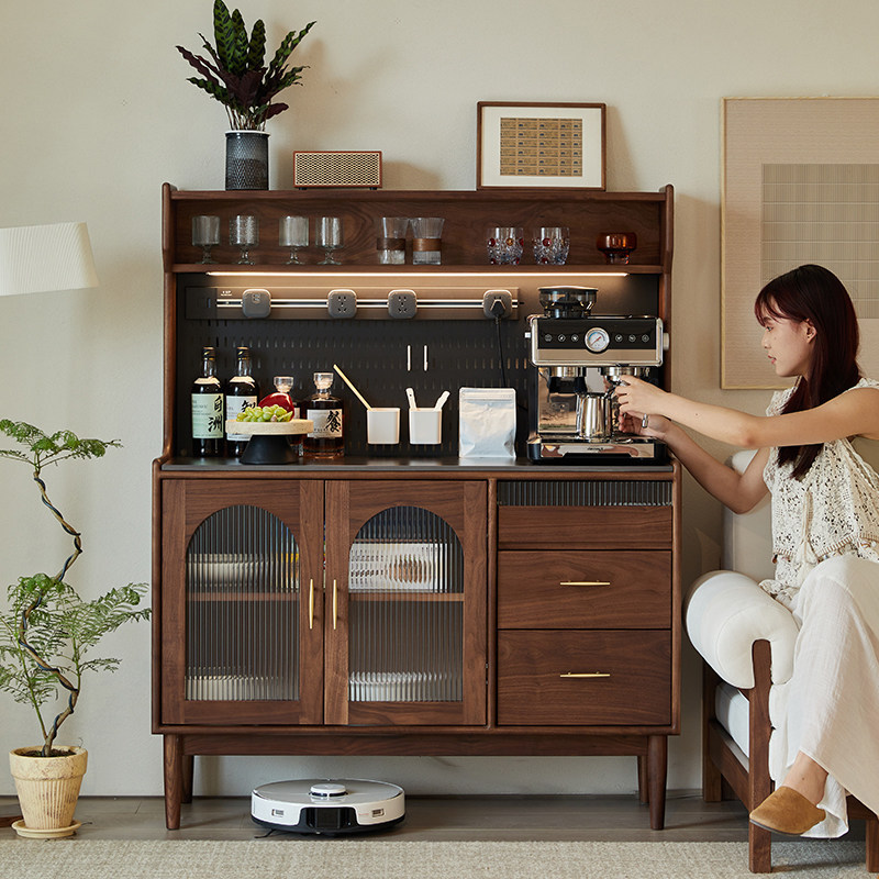 北美黑胡桃木餐柜中古风实木边柜酒柜茶水柜矮柜客厅厨房收纳柜