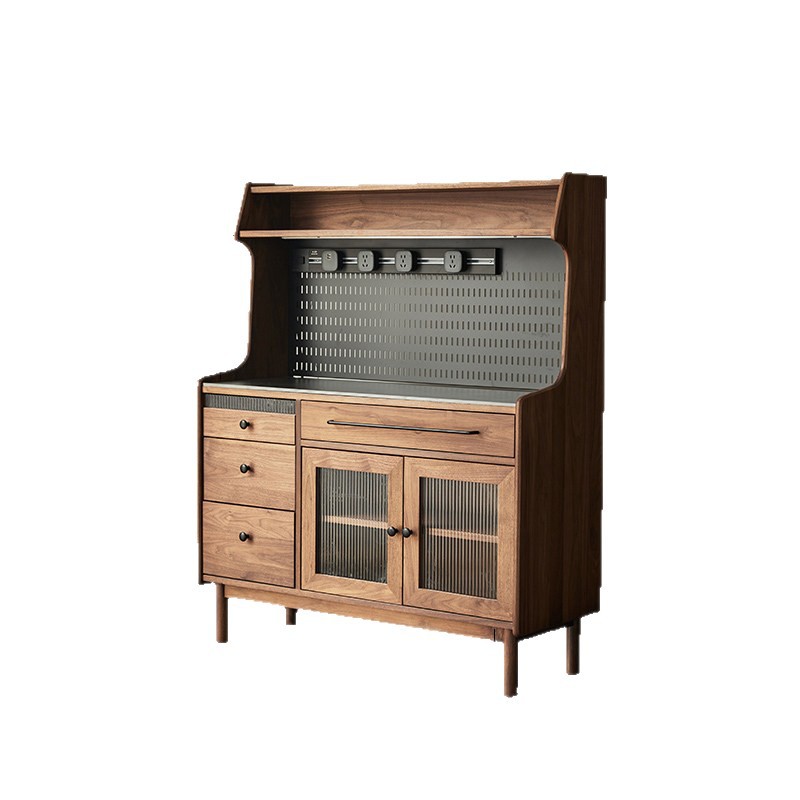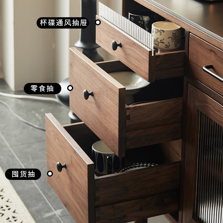 北美黑胡桃木半高餐边柜矮柜实木沙发边柜咖啡柜岩板茶水柜定制