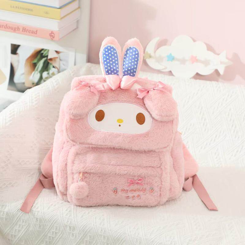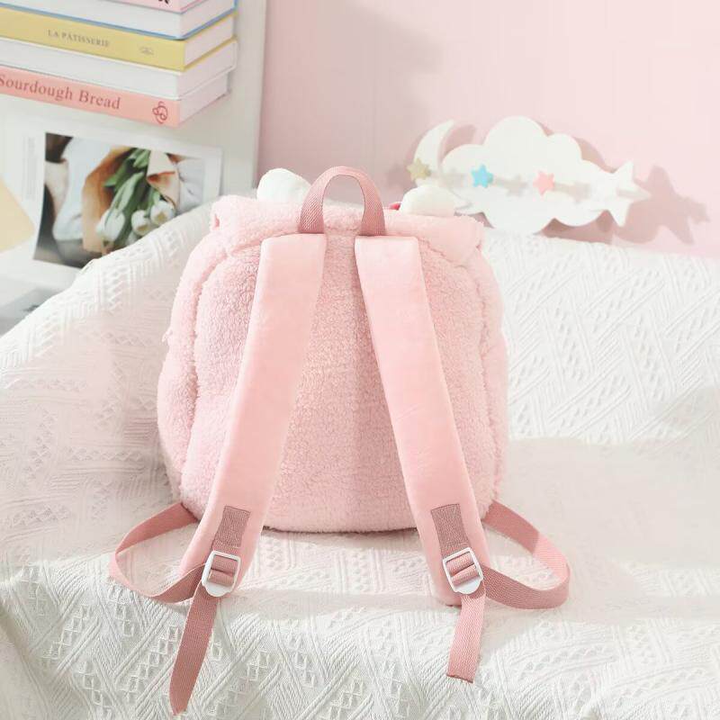 卡通可爱粉色小羊毛绒双肩包学生上课书包大容量旅行背包礼物女