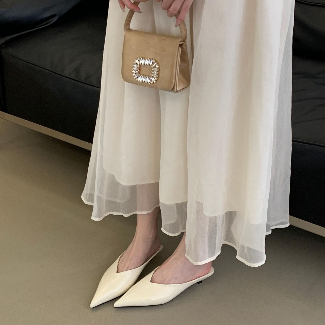 尖头气质半拖女外穿2026年春节新款名媛风性感细跟浅口包头半拖鞋