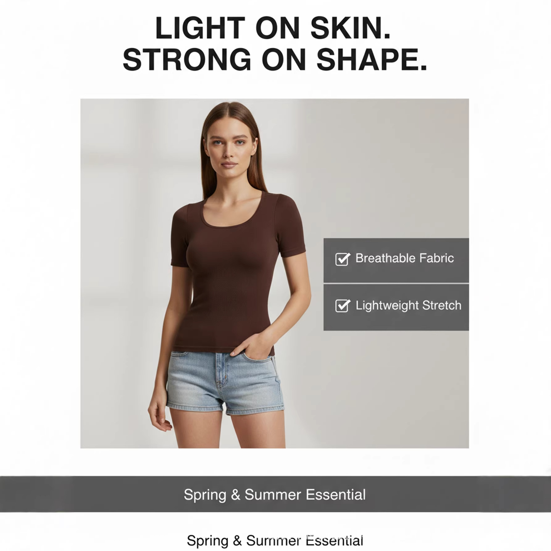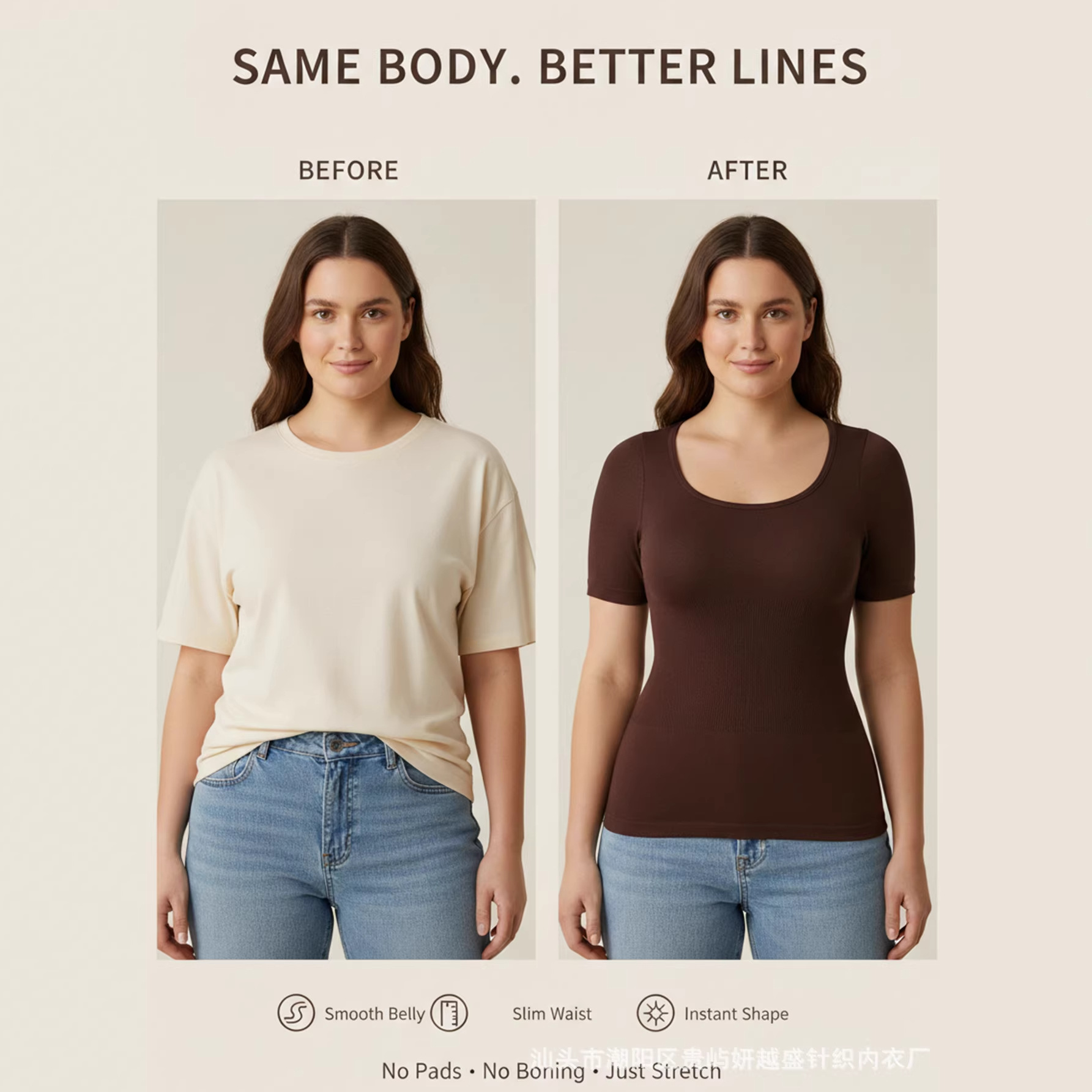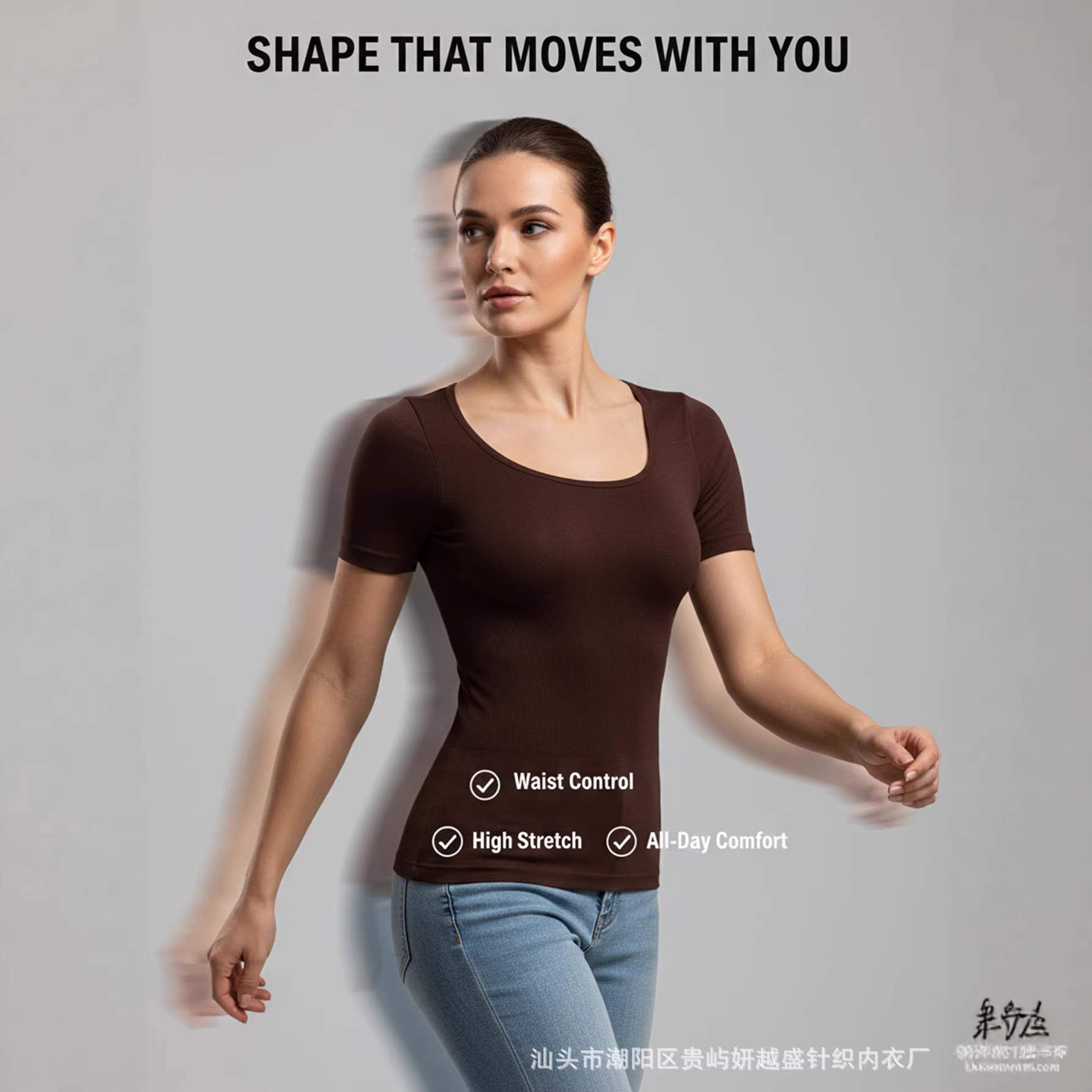 | 颜色 | 黑色弹力款紧身T恤Black Stretch T-Shirt | 颜色 | 咖色弹力款紧身T恤Coffee-Brown Stretch T-Shirt |