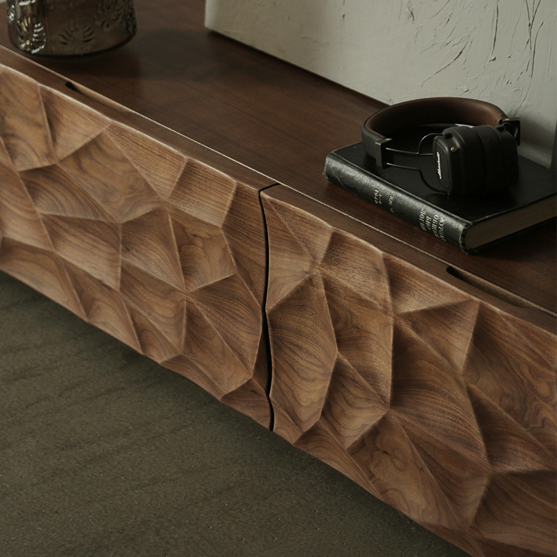 落地电视柜无腿简约现代黑胡桃木轻奢极简电视柜高级感异形地柜
