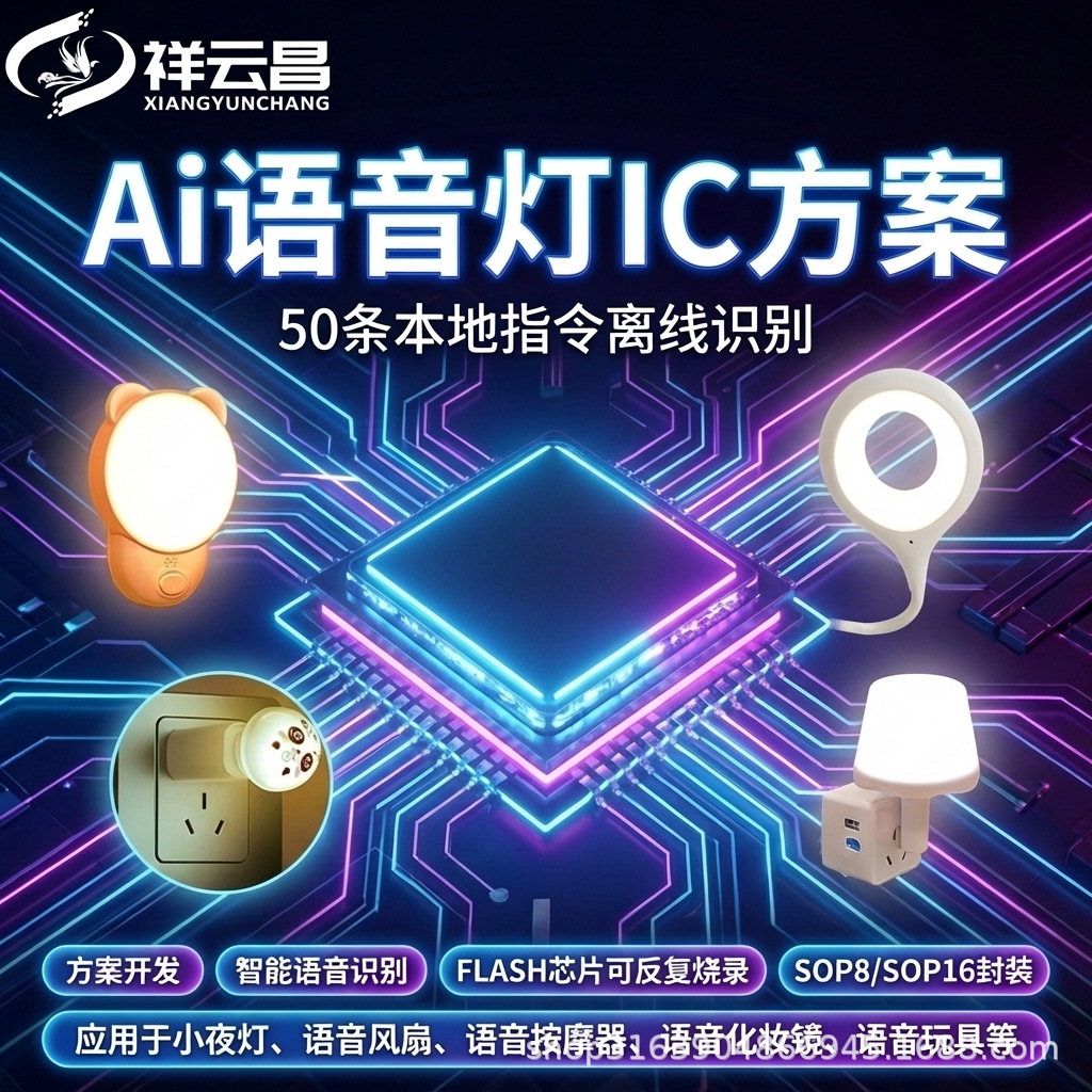 祥云昌语音识别声控小夜灯芯片开发智能语音识别开关功能模块