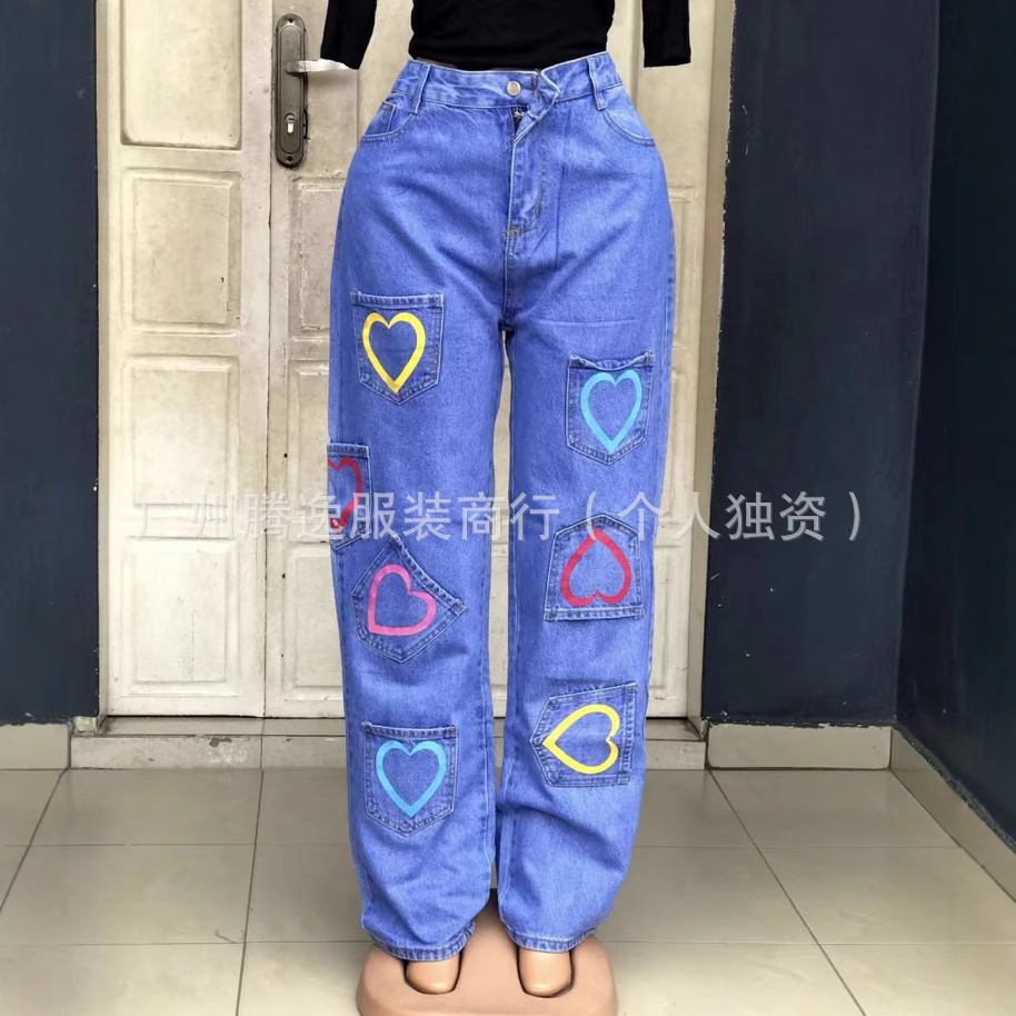 跨境high quality cargo jeans女士牛仔直筒长裤货源批发availabl