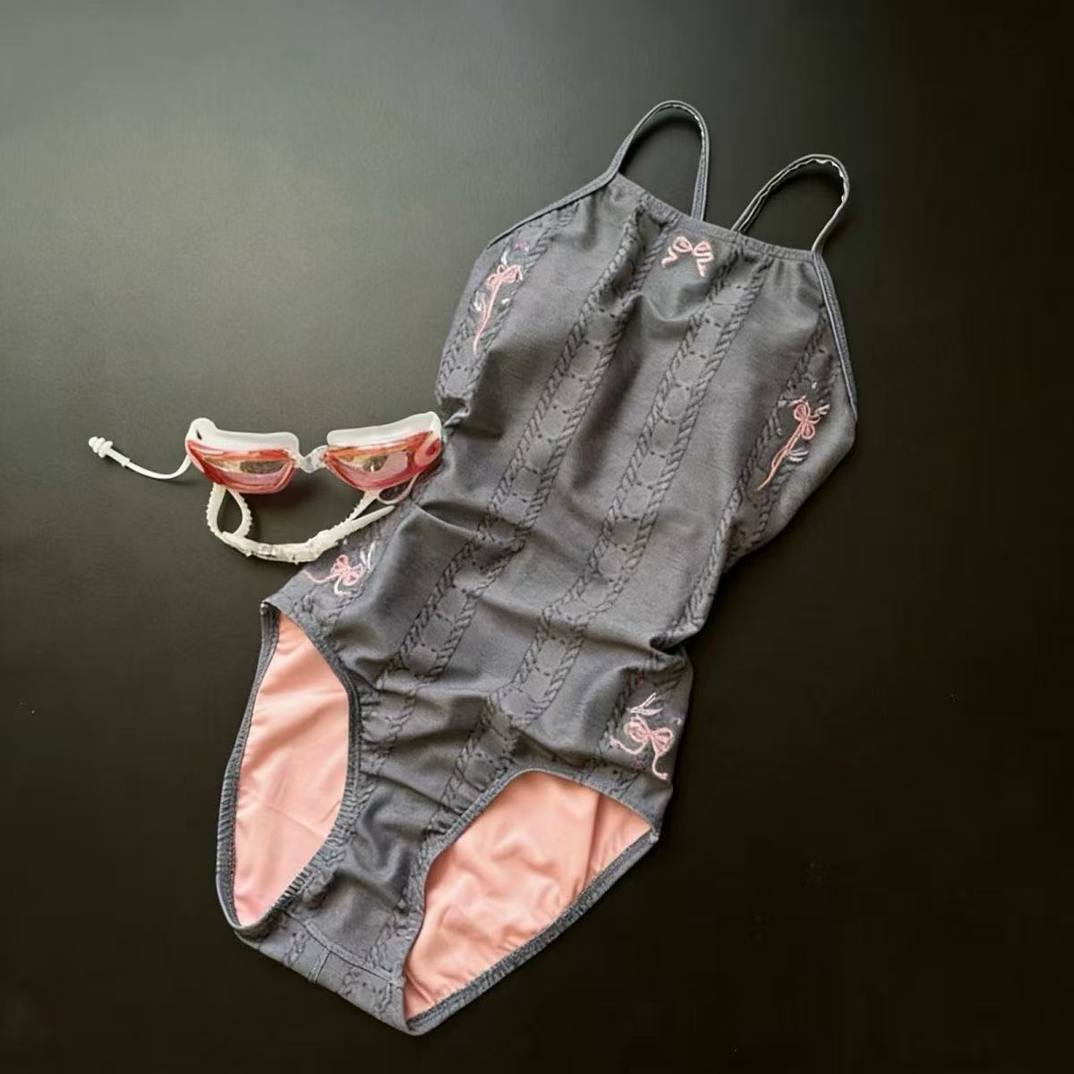 【灰耀粉黛】竞速游泳专业成人性感训练连体三角运动泳衣女爆款