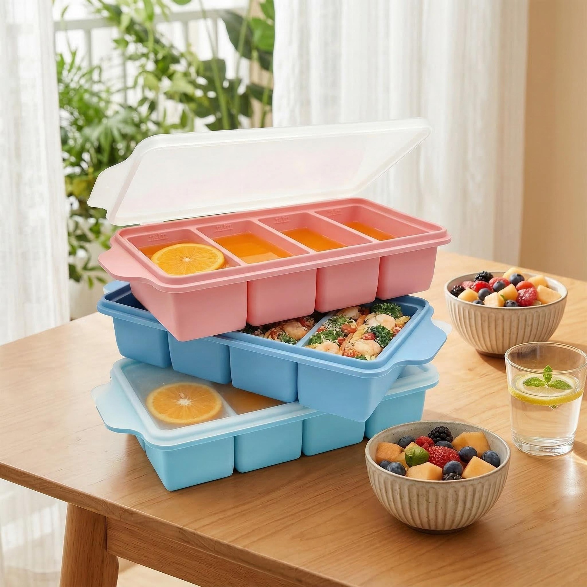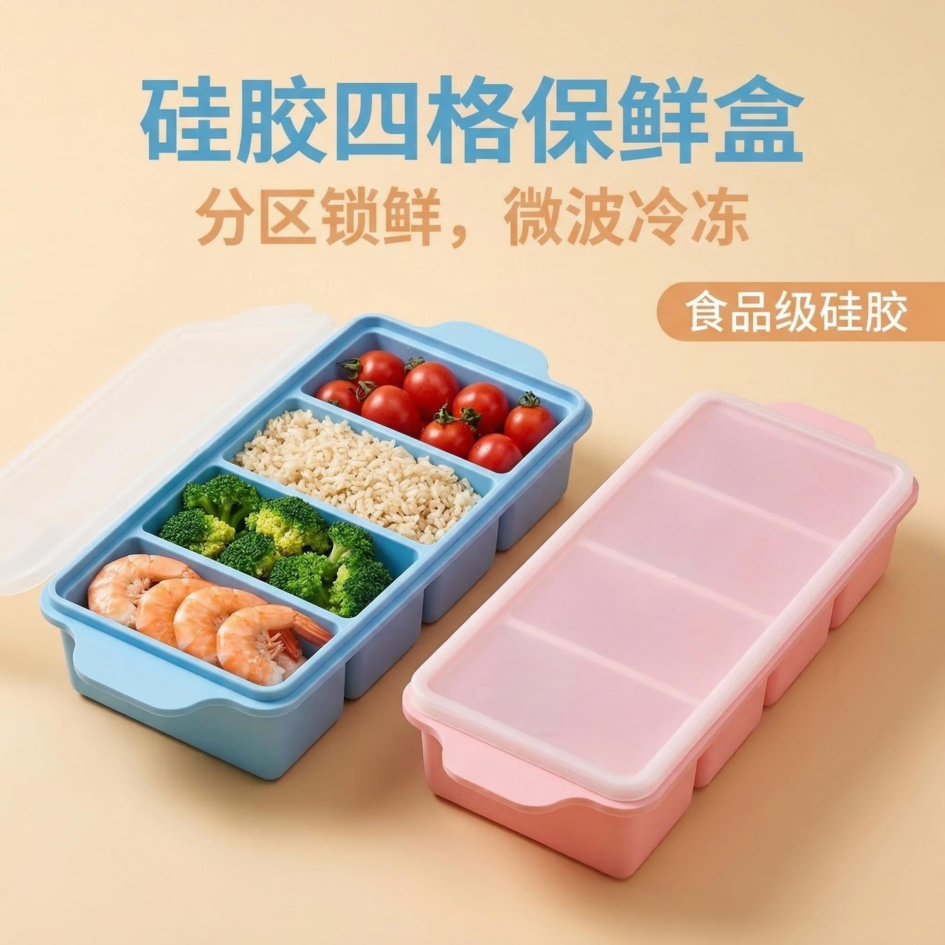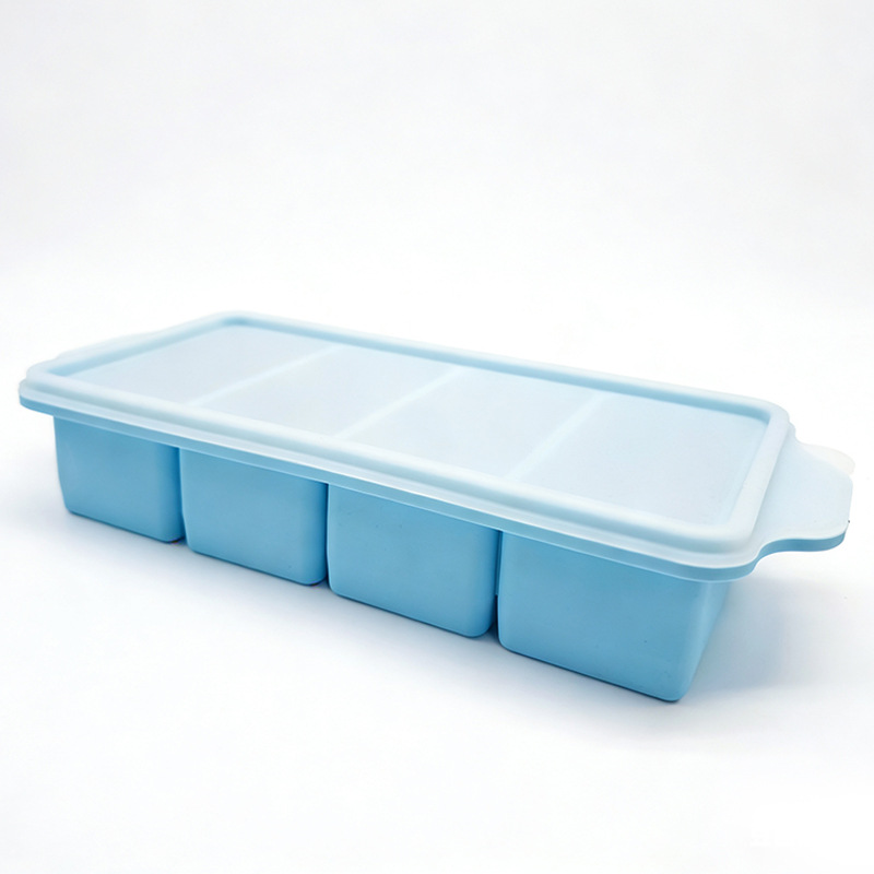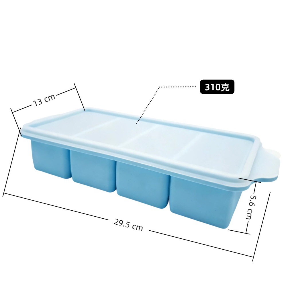 硅胶分格冻汤硅胶模具冰格4格食物辅食储存盒保鲜盒冷冻托盘带盖