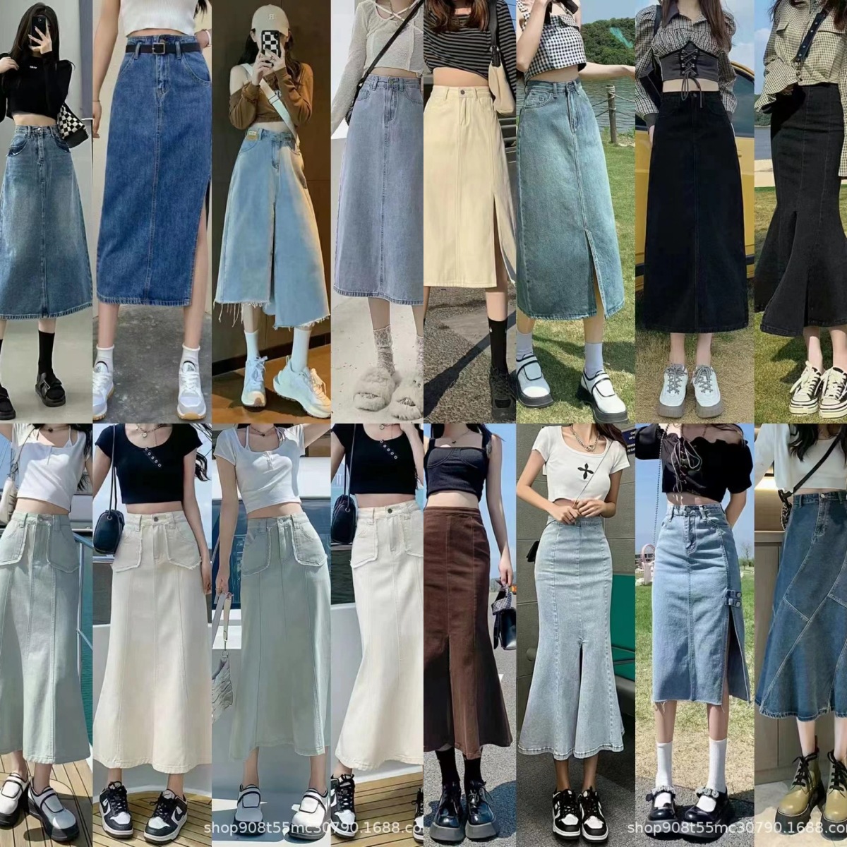2025夏季新款韩版女式长裙高腰包臀半身裙厂家直销批女牛仔半身裙