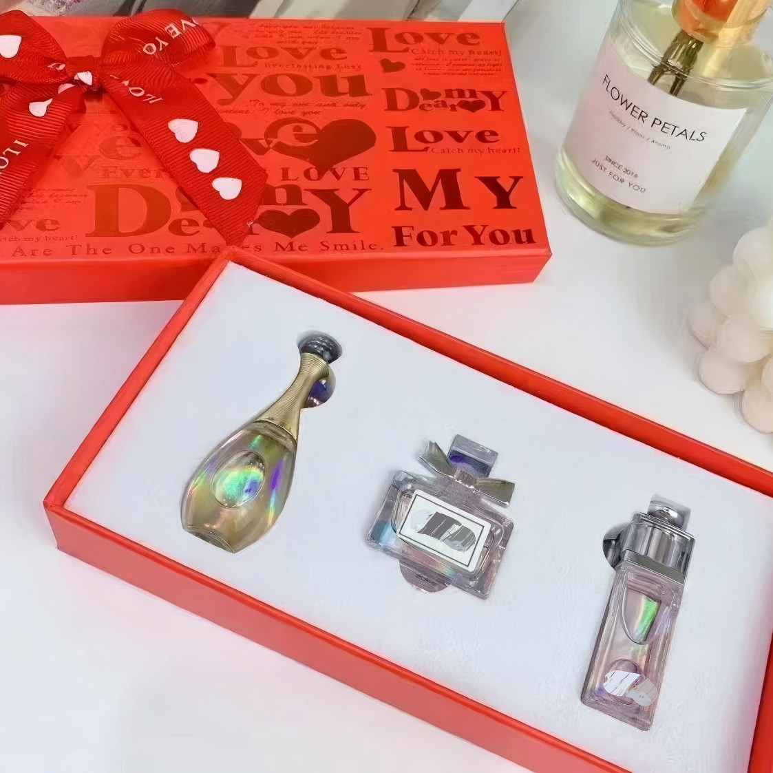 跨境外贸Q版小样香水迪红抽屉白盒迪银色件套批发