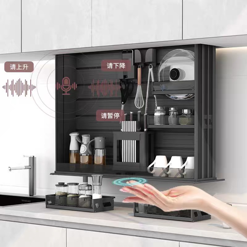 天使智能升降拉篮厨房电动上下全铝吊柜调味篮双防夹语音触摸控制