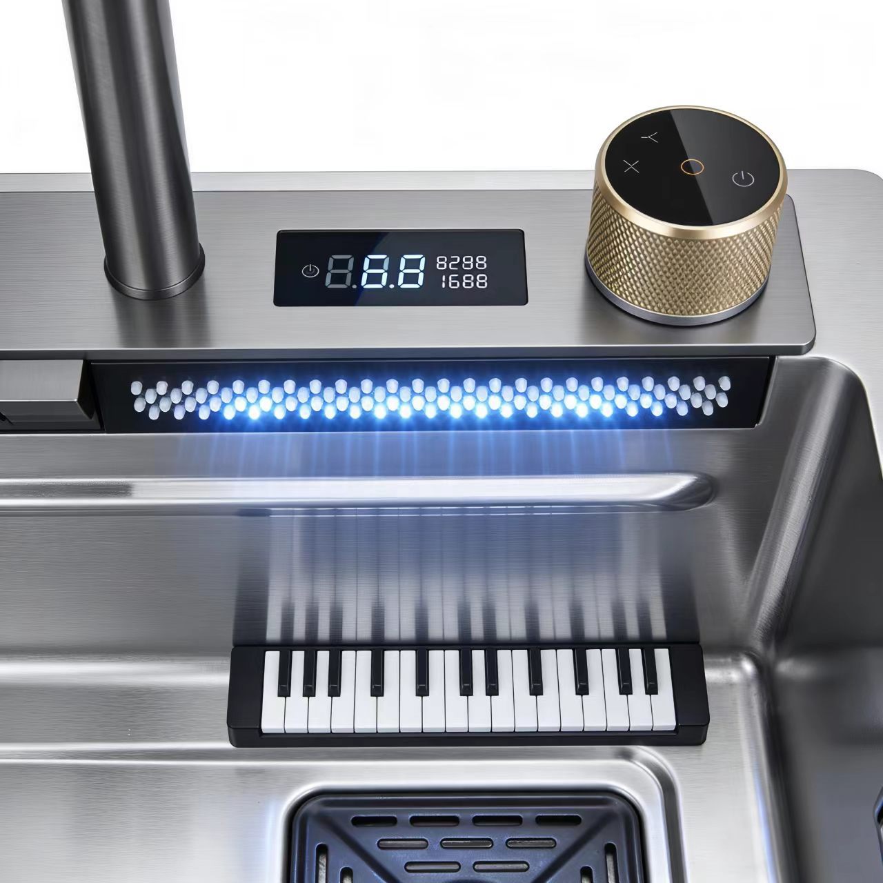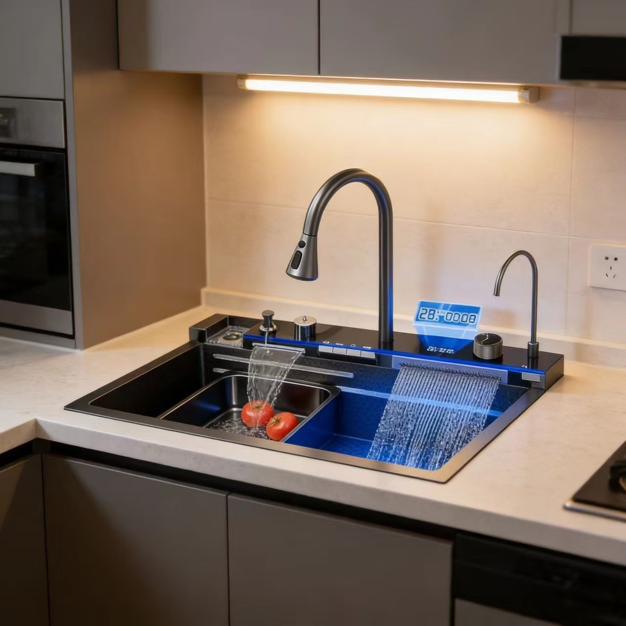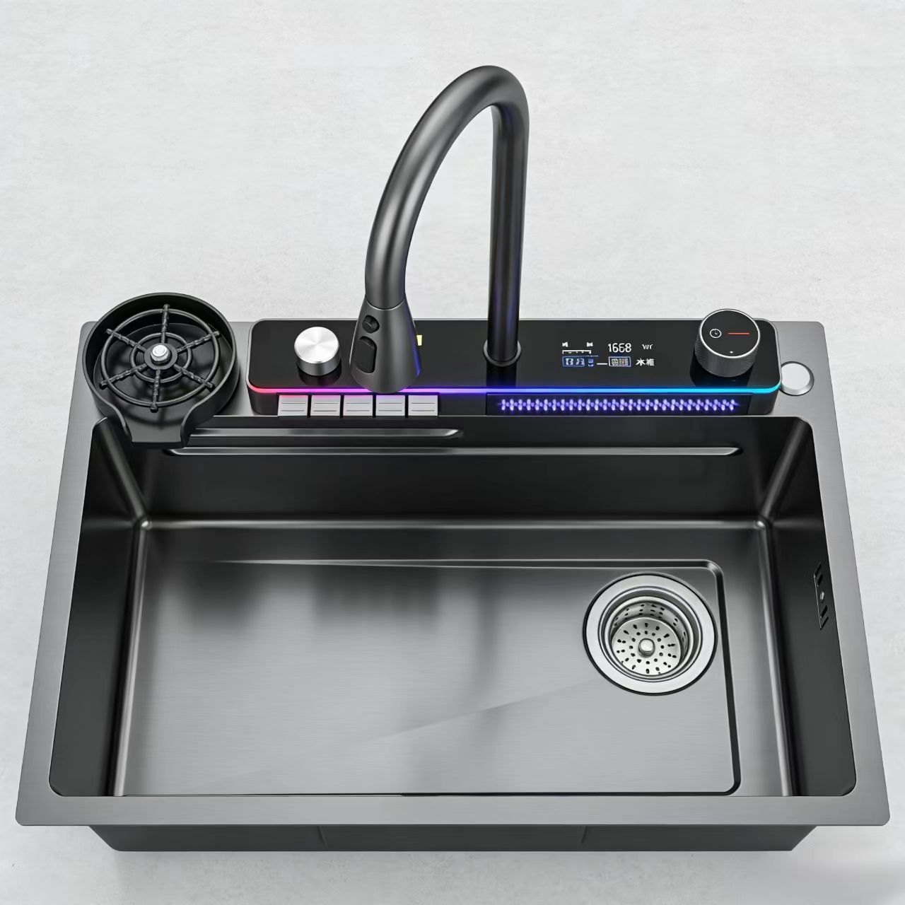 2026新款枪灰色鲸鱼水槽 厨房数显控温洗菜盆 304不锈钢纳米抗油