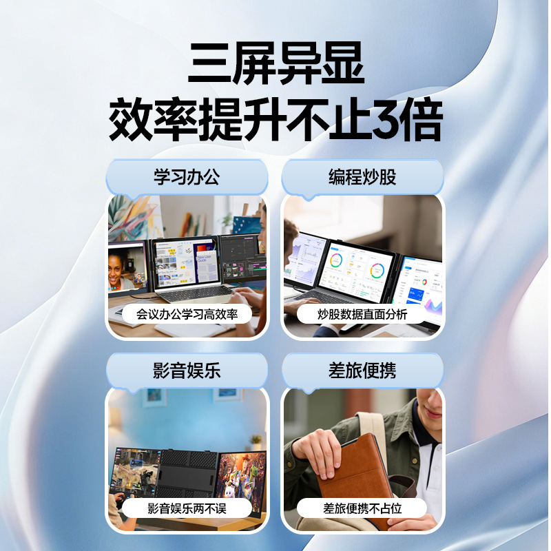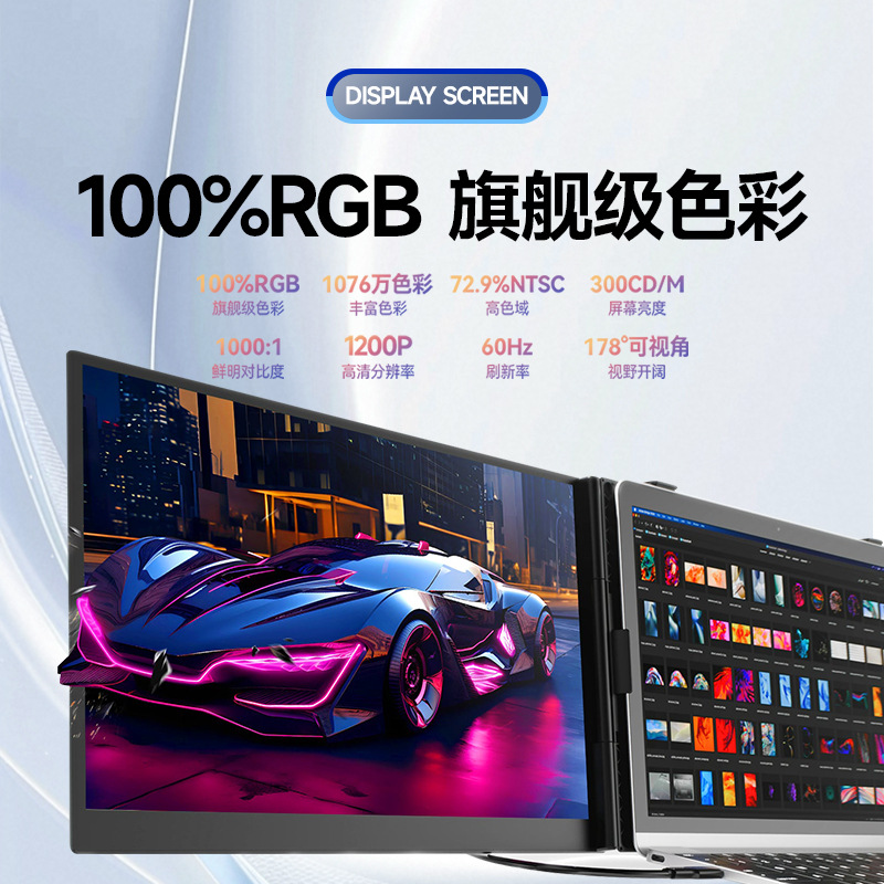 [工厂直销]14寸双屏一线连接笔记本扩展便携式显示器炒股办公娱乐