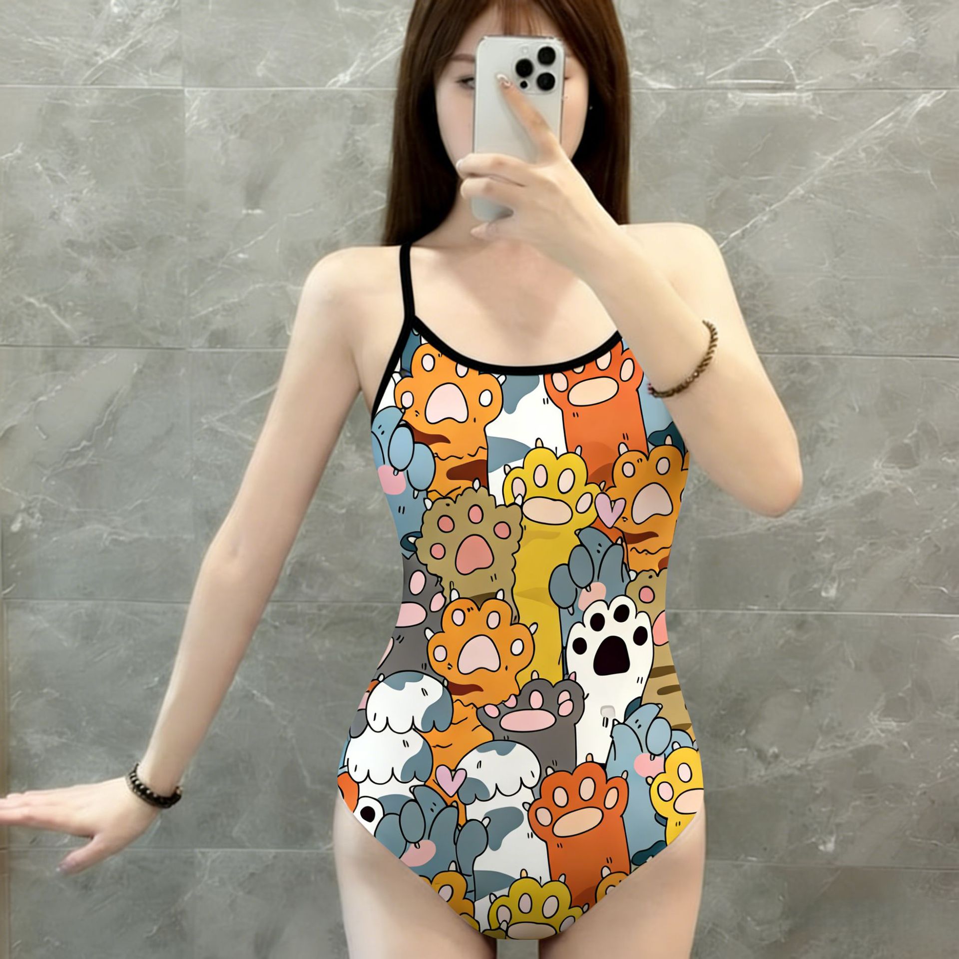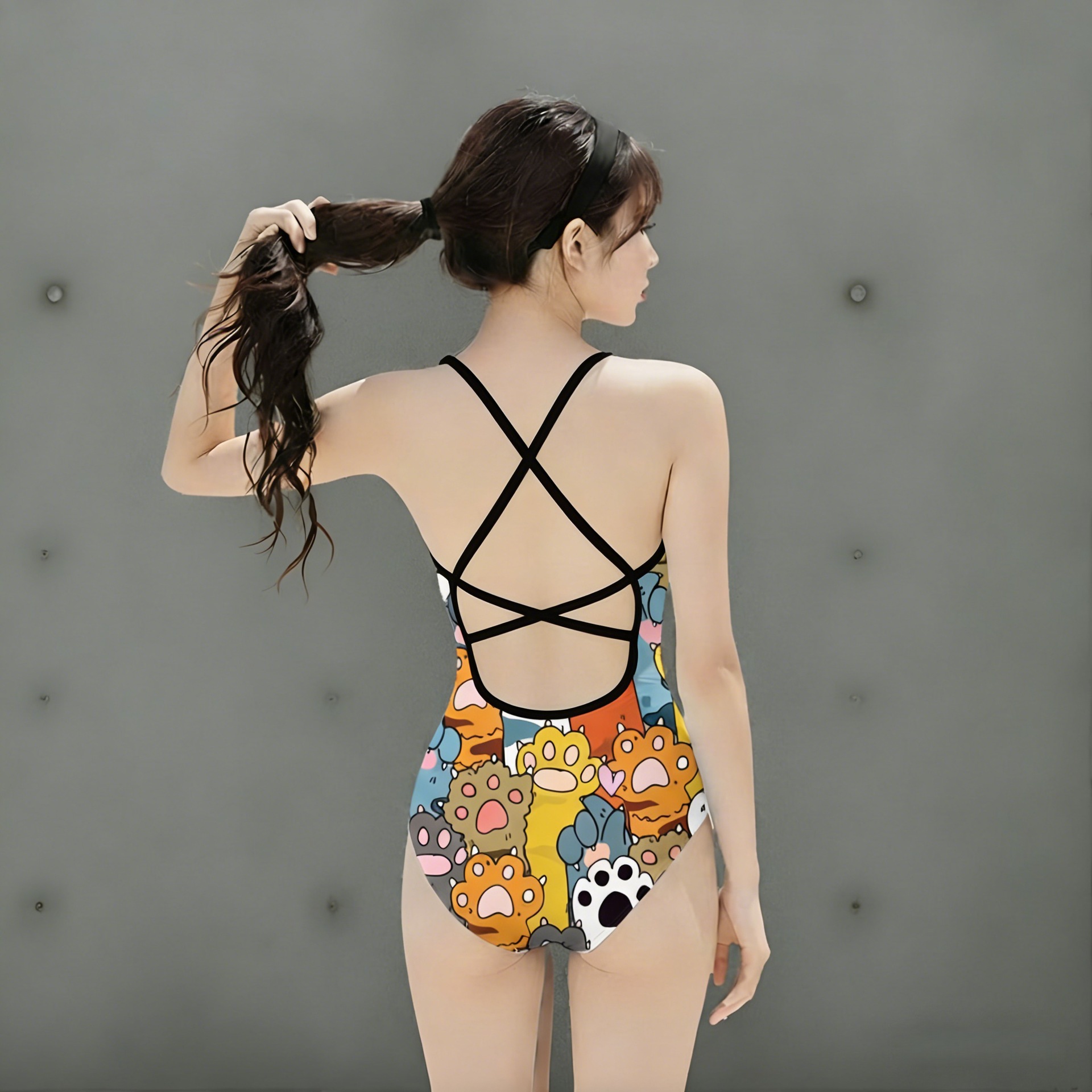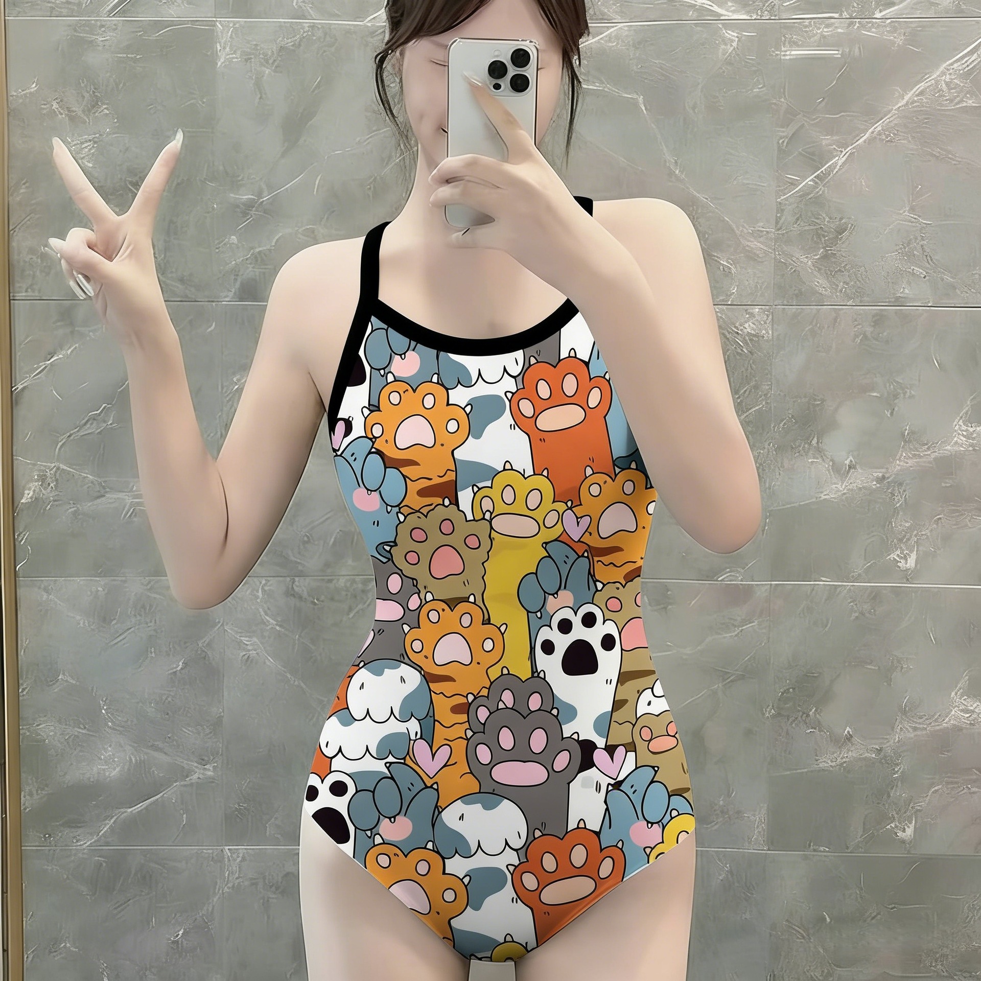 新款卡通连体泳衣女新款专业包臀三角学生运动速干可爱动物游泳装