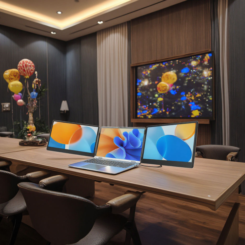 外贸款双屏14英寸便携式显示器靠背款双屏显示屏笔记本扩展屏副屏