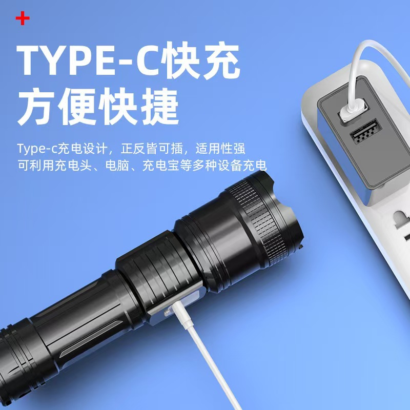 强光手电筒户外长续航便携式可充电带数显多模式手电筒