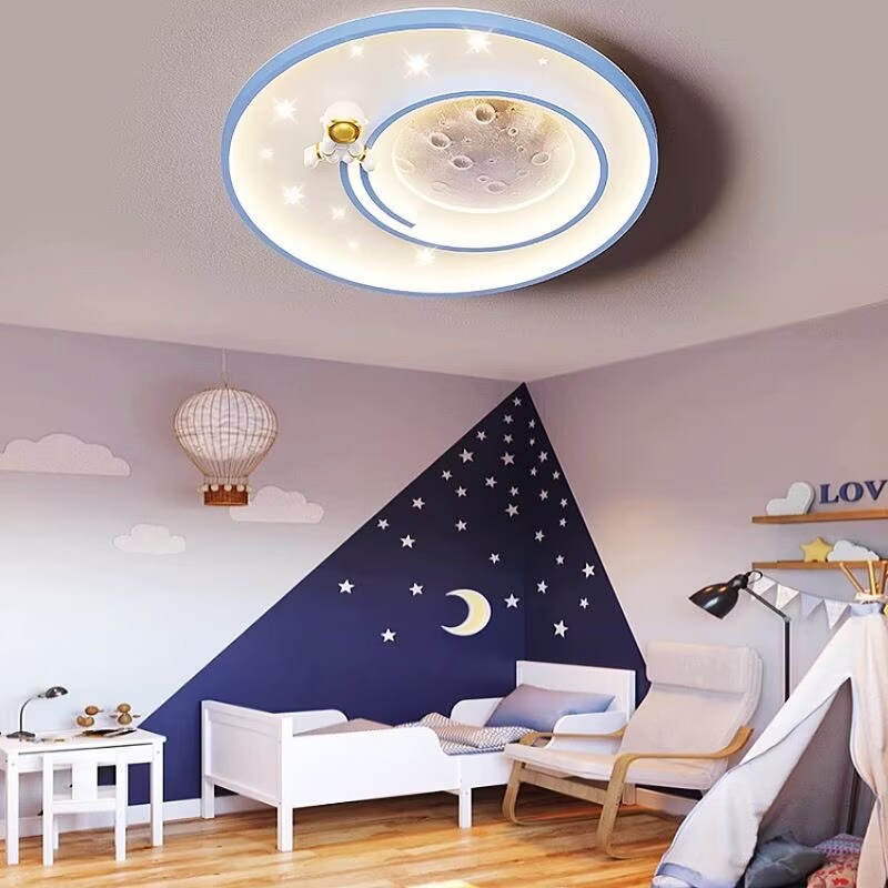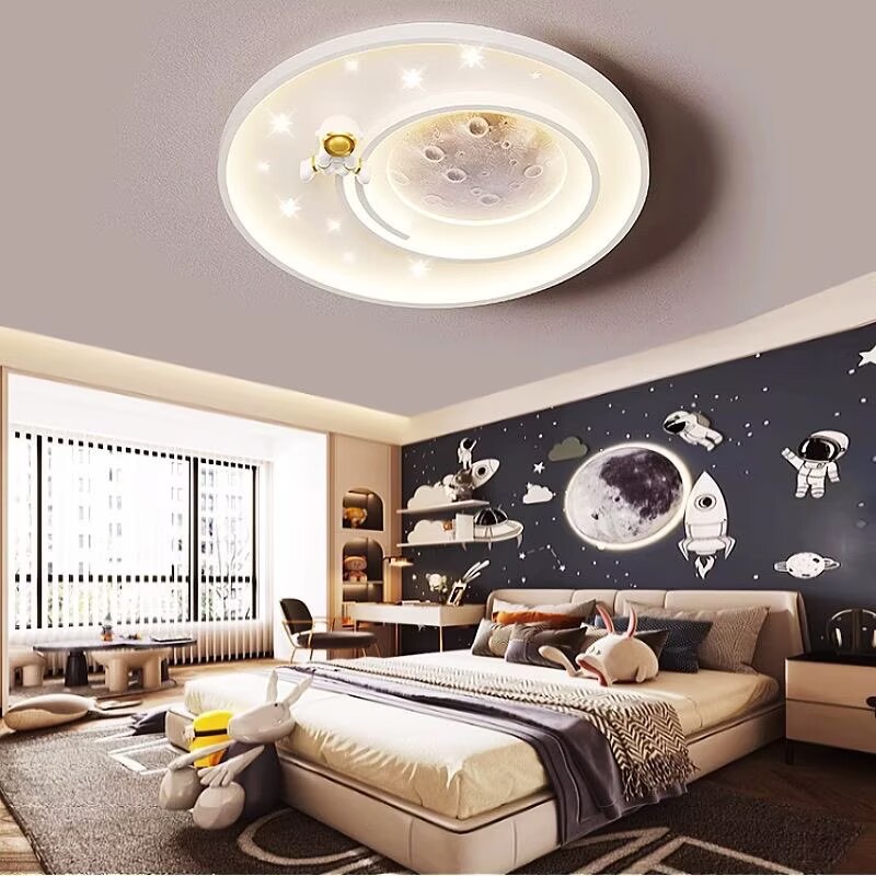 儿童房灯卡通太空人宇航员吸顶灯创意月球男女孩卧室房间中山灯具