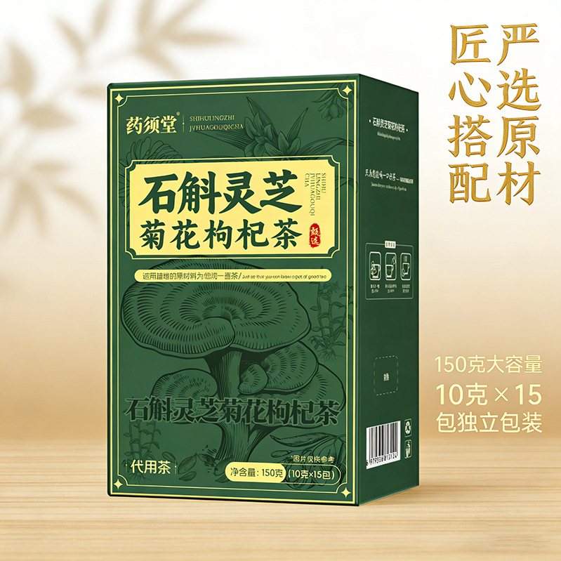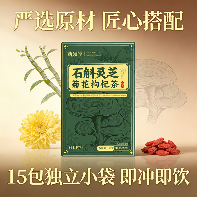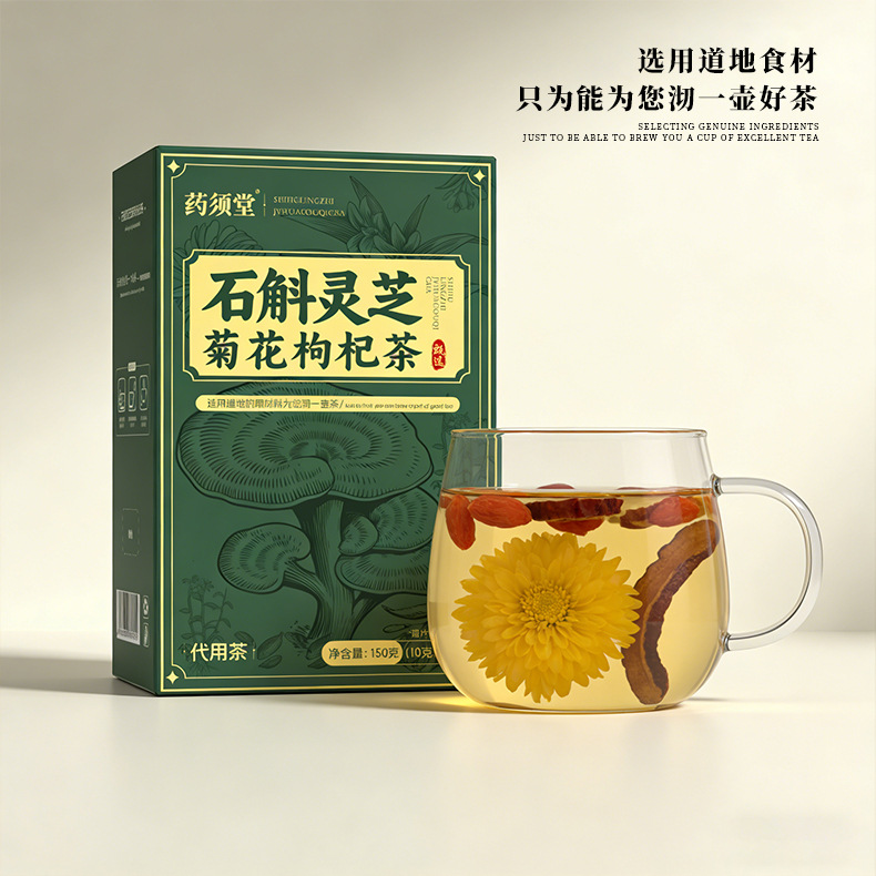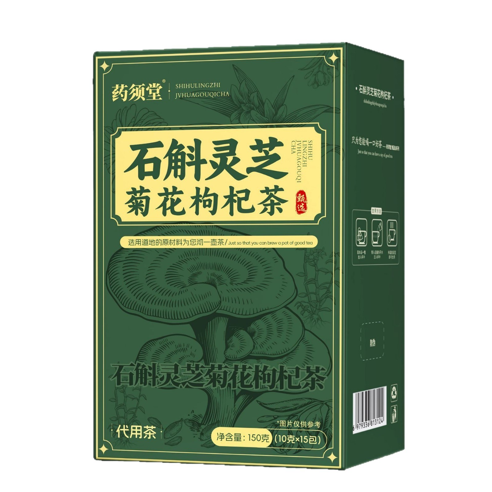 售卖方式 | 预包装 | | 原料与配料 | 石斛、灵芝、枸杞、菊花 |