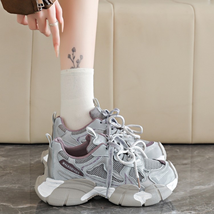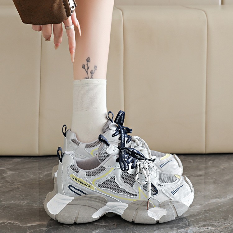 厚底网面老爹鞋女2026春季欧洲站新款透气休闲小众复古运动鞋增高