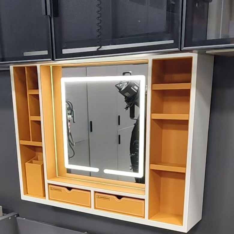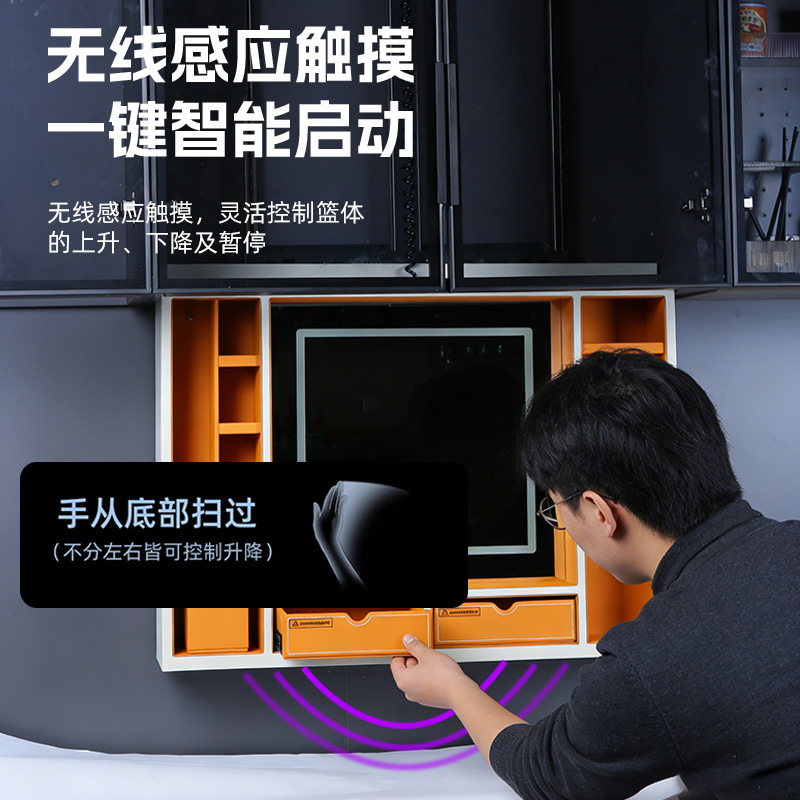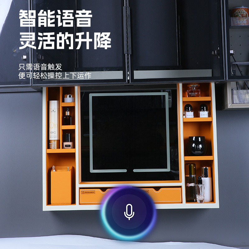 电动升降吊柜拉篮智能声控升降化妆镜梳妆台 隐藏式皮革收纳柜